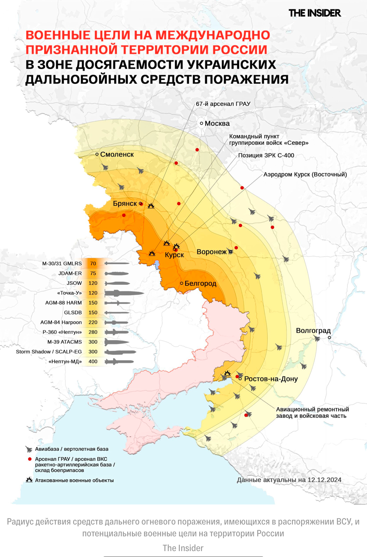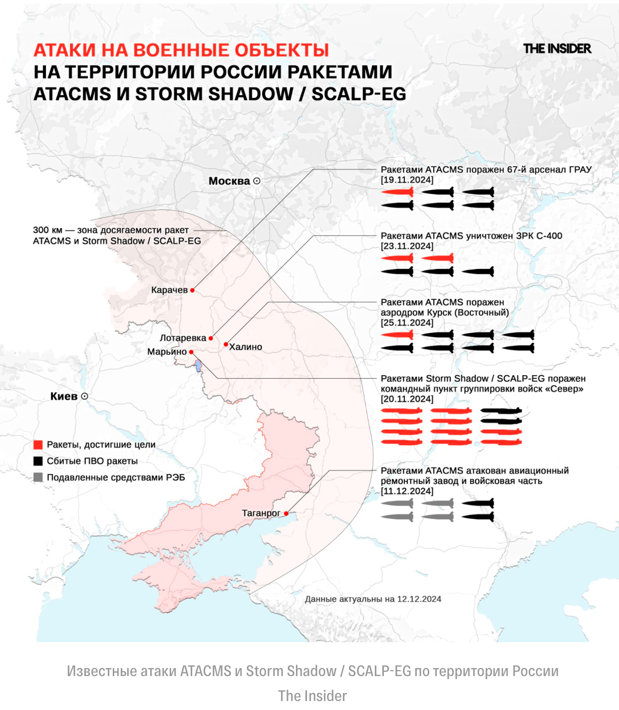 The Insider kirjutab novembrikuu Ukraina raketilöökidest Vene territooriumi sügavusse, milleks USA/UK/Prantsusmaa hiljuti loa andsid.