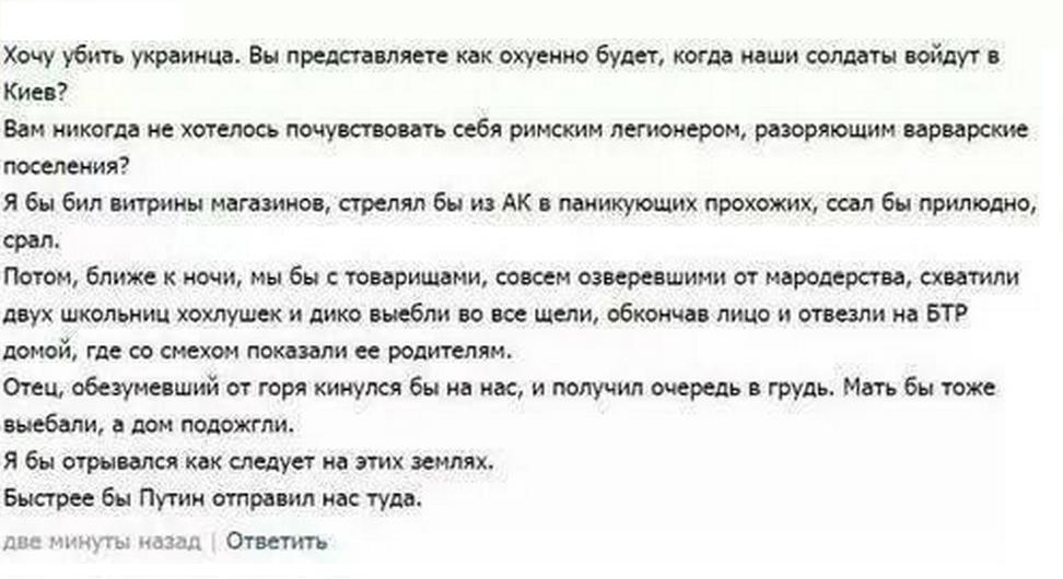 Aga - Ukraina (ja tundub - et ka kuskil mujal) sotsiaalvõrkudesse on sattunud mingi troll tekst - milles on ülisuured lubadused ukrainlaste kallal jõhkrusi (pehmelt väljendades) teha - tundub, et vk.com kontolt.