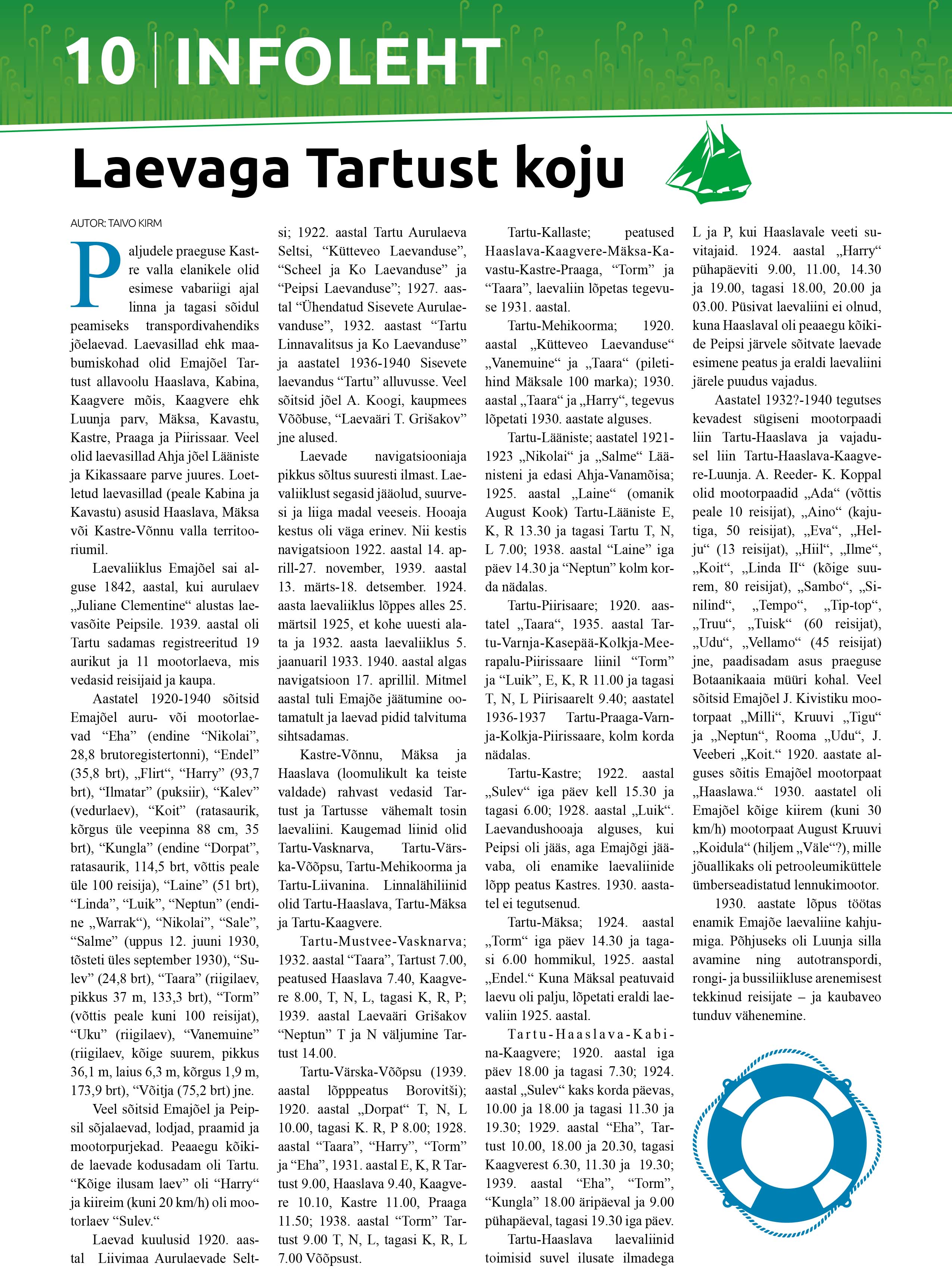 * Tartu-Lääniste; 1938. aastal “Laine” iga päev 14.30 ja “Neptun” kolm korda nädalas