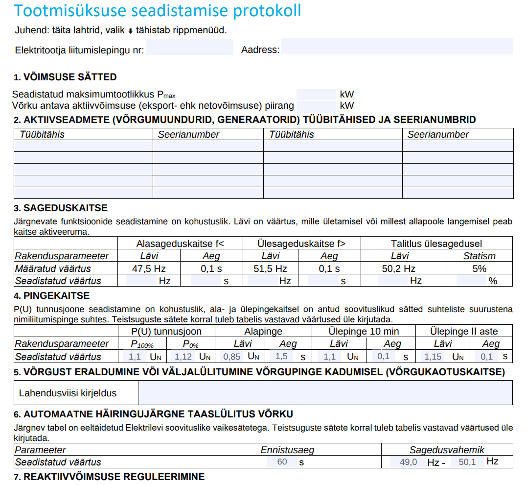Iga Eestis Elektrilevi võrku ühendatud PV inverteri kohta tuleb vormistada selline Võrgukaotuskaitseprotokoll, kus on kirjas antud seadme võrgukaotusseaded ja määratud võrguhälvete piirväärtused ja max rakendusajad.