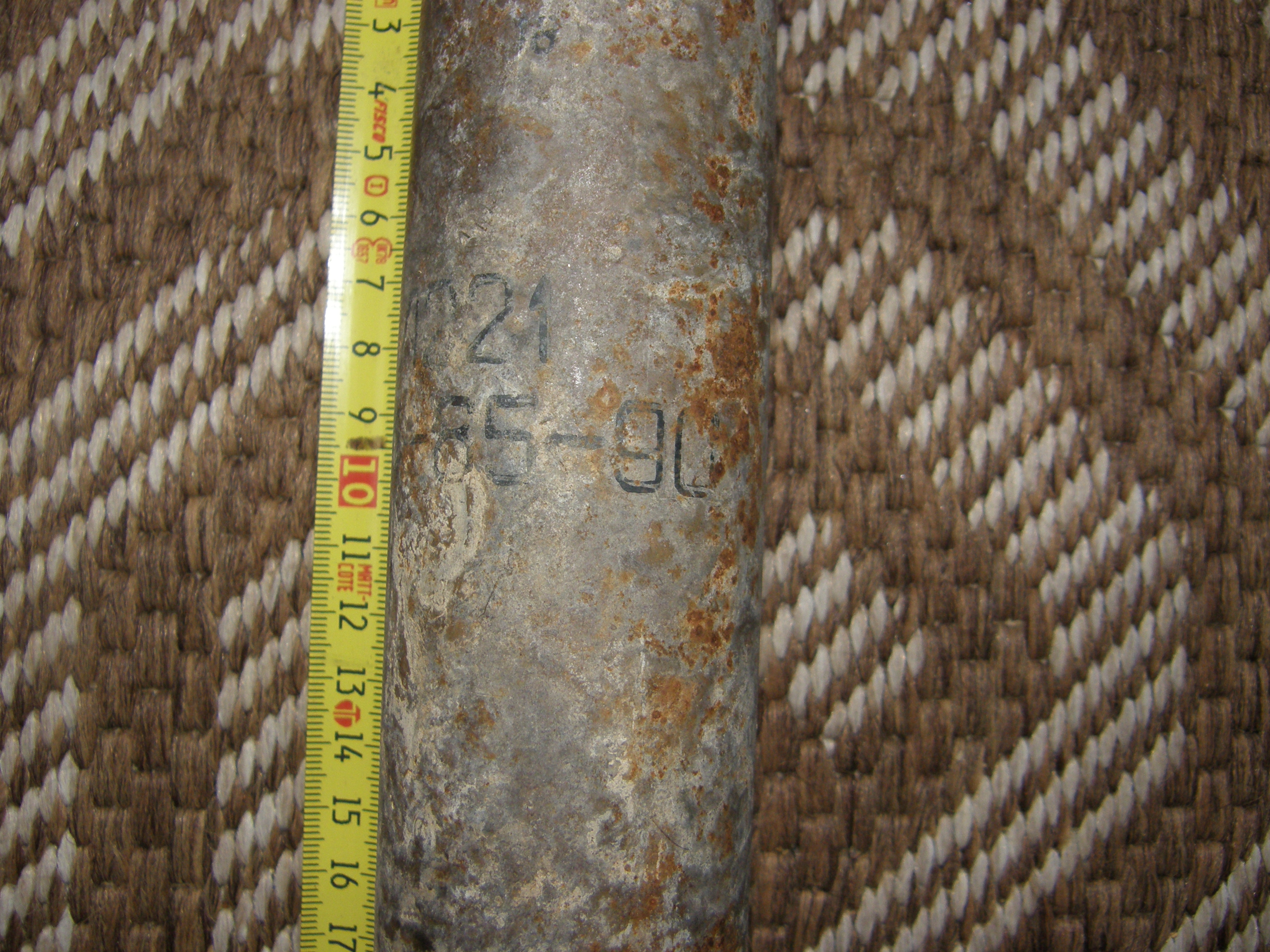 Siis selline hülss jäi näppu. Olla Raadi lennuväljalt üles korjatud. Näeb välja natuke nagu oleks 45 mm TT kahuri hülss lühemaks lõigatud, aga pole ka päris see. Igat pidi otsinud, aga kuskilt midagi sarnast leidnud ei ole, russianammo lehekülg jääb ka vastuse võlgu minu arust. Lennuväli võiks viidata mingi lennumassina pardarelvale, aga juba ammust ajast ju eelistatakse rimless moona igasugustel sellistel kaliibritel, et mis see siis on, nii uue aja asi ja rimmed hülsiga. Aastaarv võiks nagu 90 olla küljel oleva kirja põhjal. Talla all mingeid erilisi markeeringuid ei olnud, proovisin tabada seda vähest, mis sinna löödud oli, asi oksüdeerunud ka servadest, aga muud ei paistnud olevatki. Põhiline info paistab ikka hülsi küljel olema.