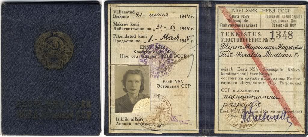 Töötõend välja antud juunis 1944!! siis ilmselt Võrus ENSV ajutises pealinnas?
