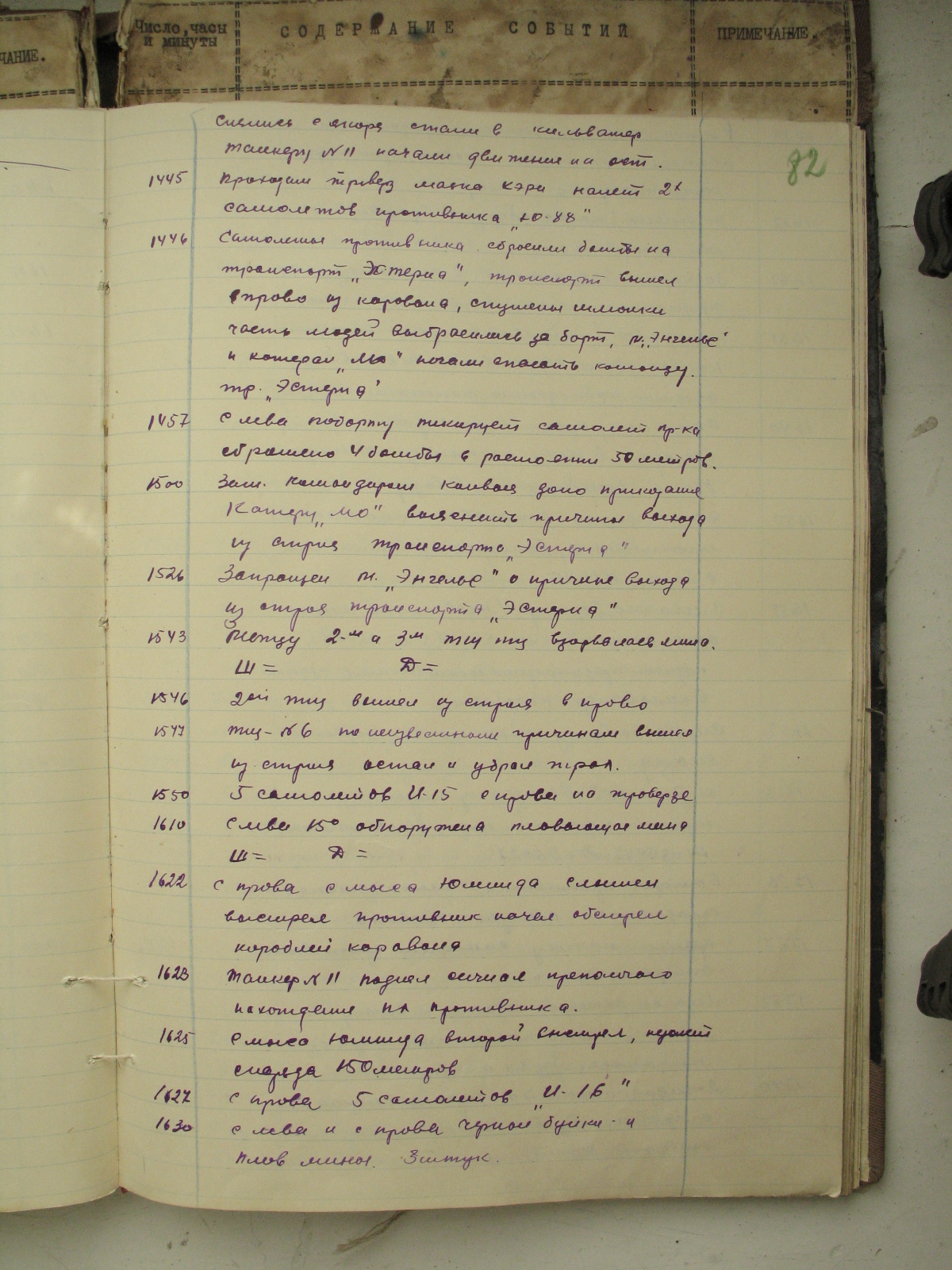 veerud: kuupäev, kellaaeg, lennuki komandör, asukoht, lennukõrgus, kaugus laevani, laeva tüüp, suurus, kurss, märkused