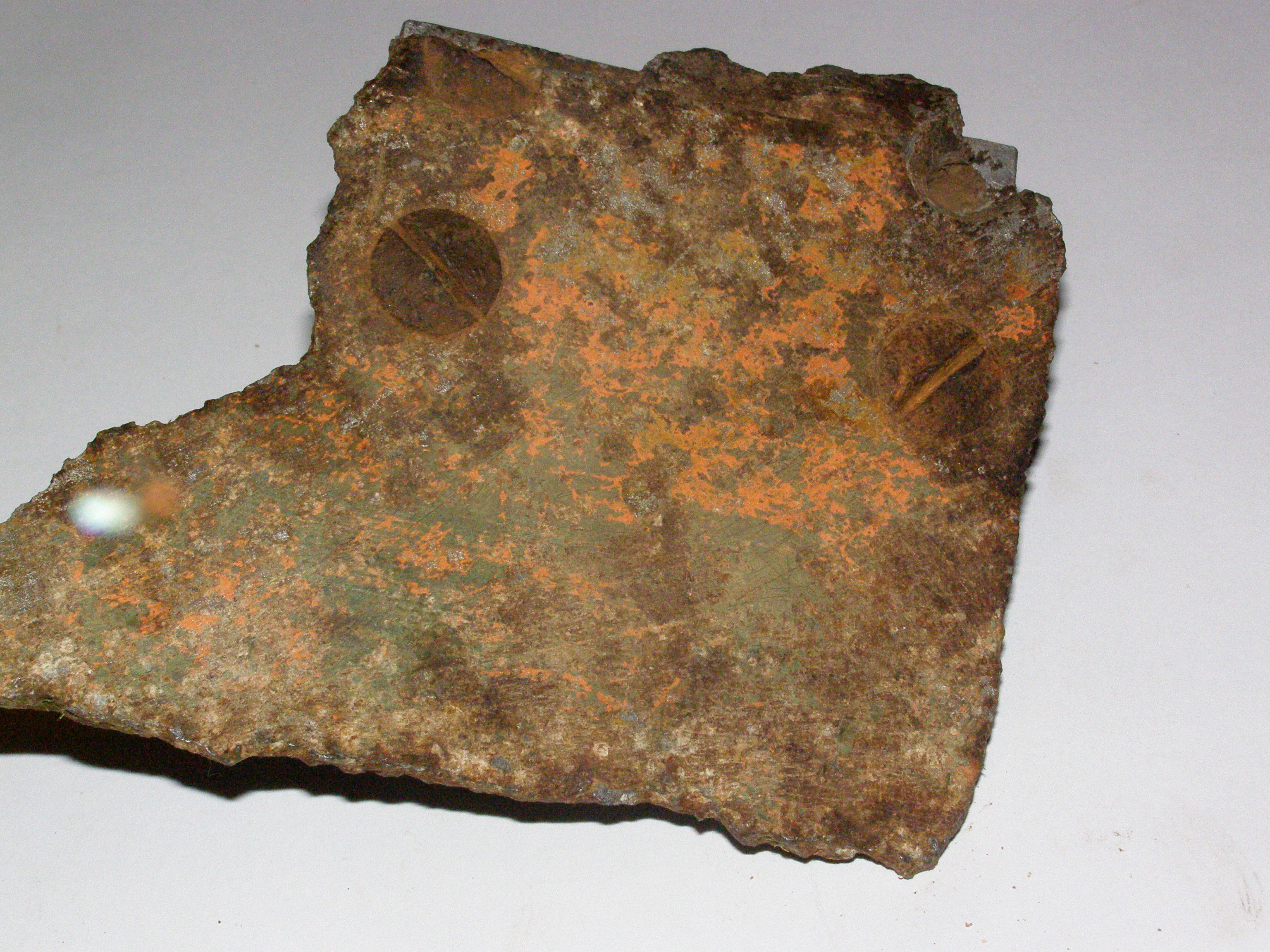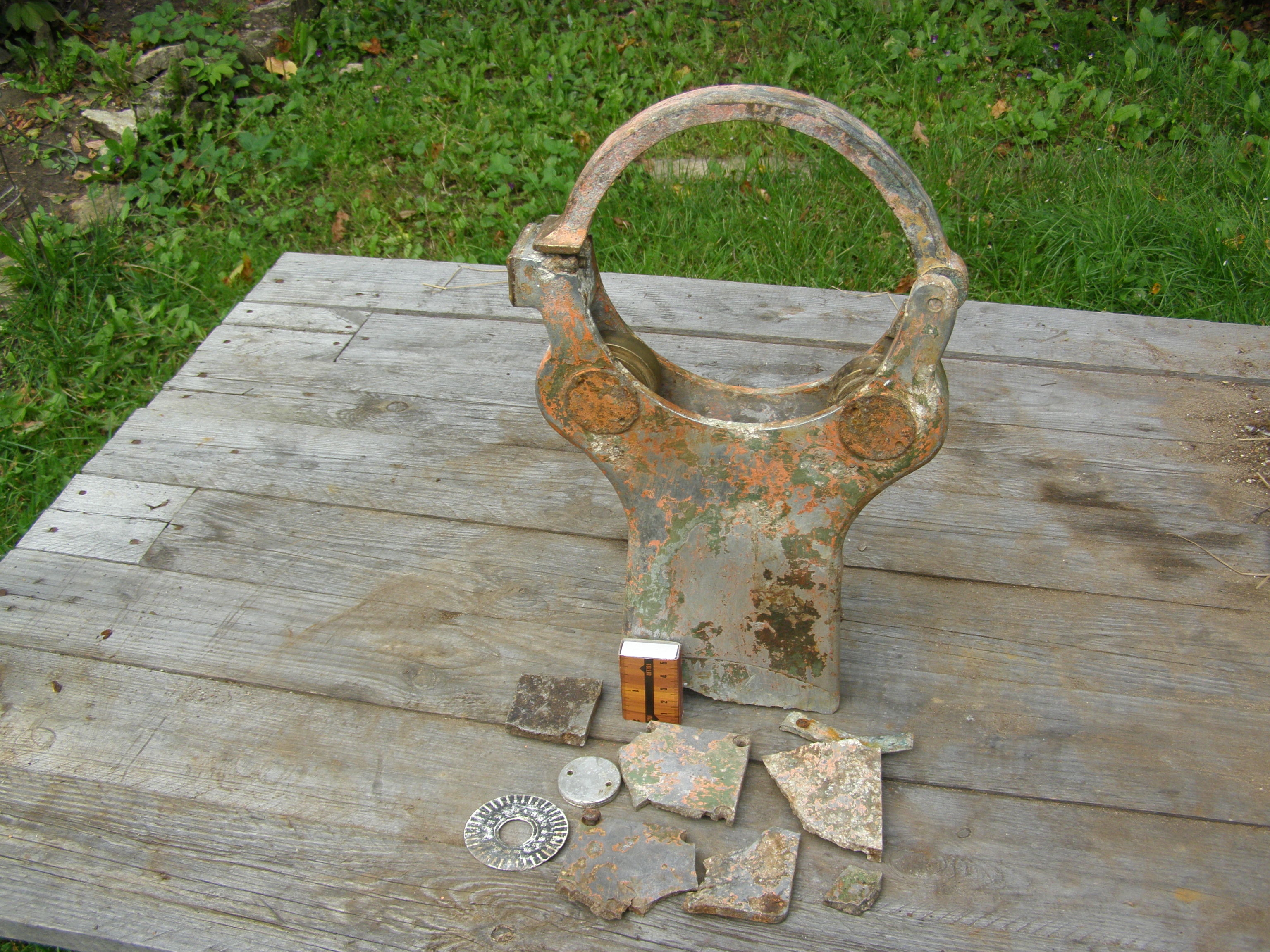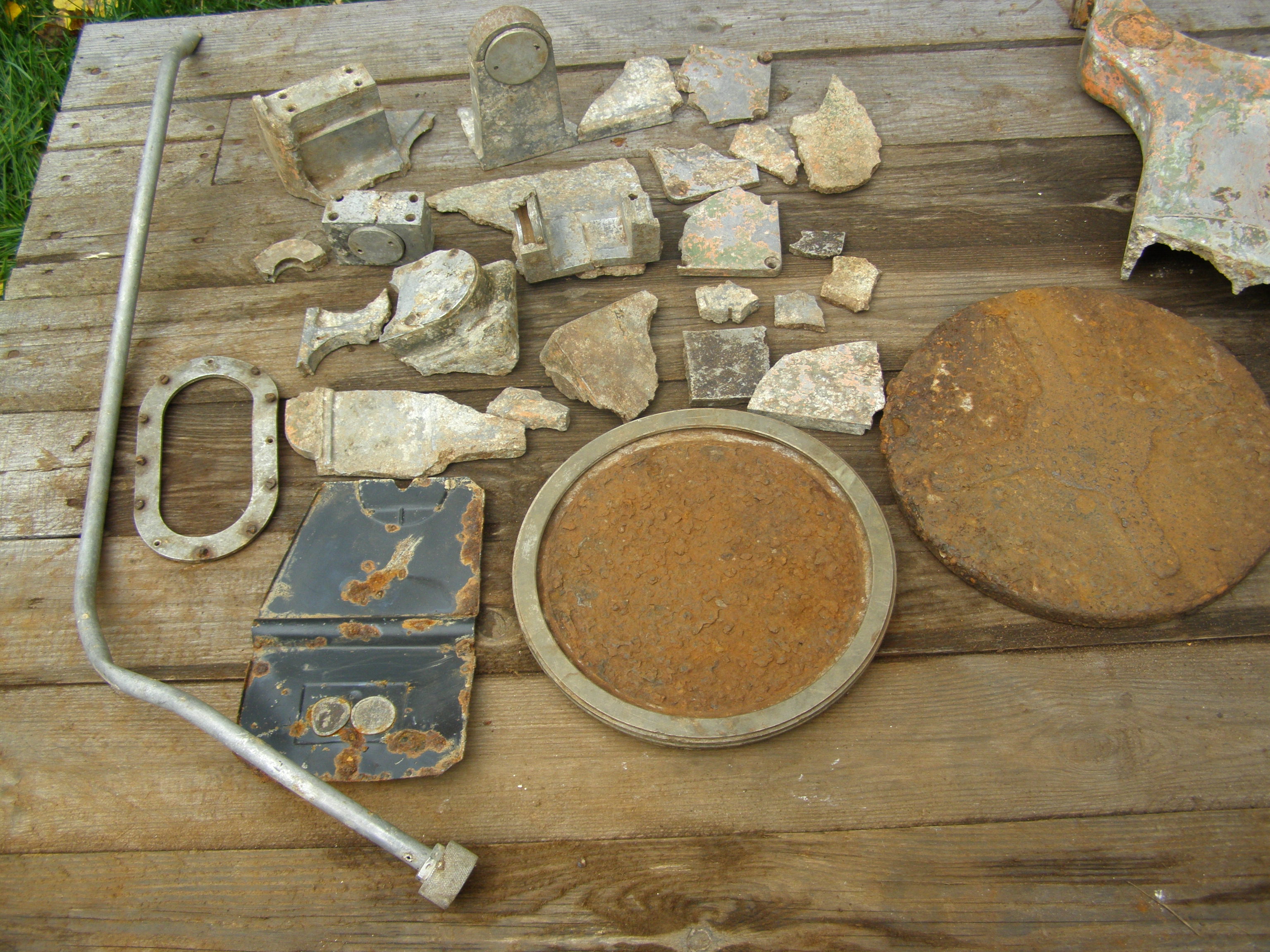 Pildil olevad tükid värvitud ühelt poolt saksa tehnikale omaselt oranži kruntvärviga.Värvitud pool moodustab midagi korpuse või karteri laadset ja sissepoole jäävad laagripesad ja muu.Pildil üks fragment kahelt poolt.