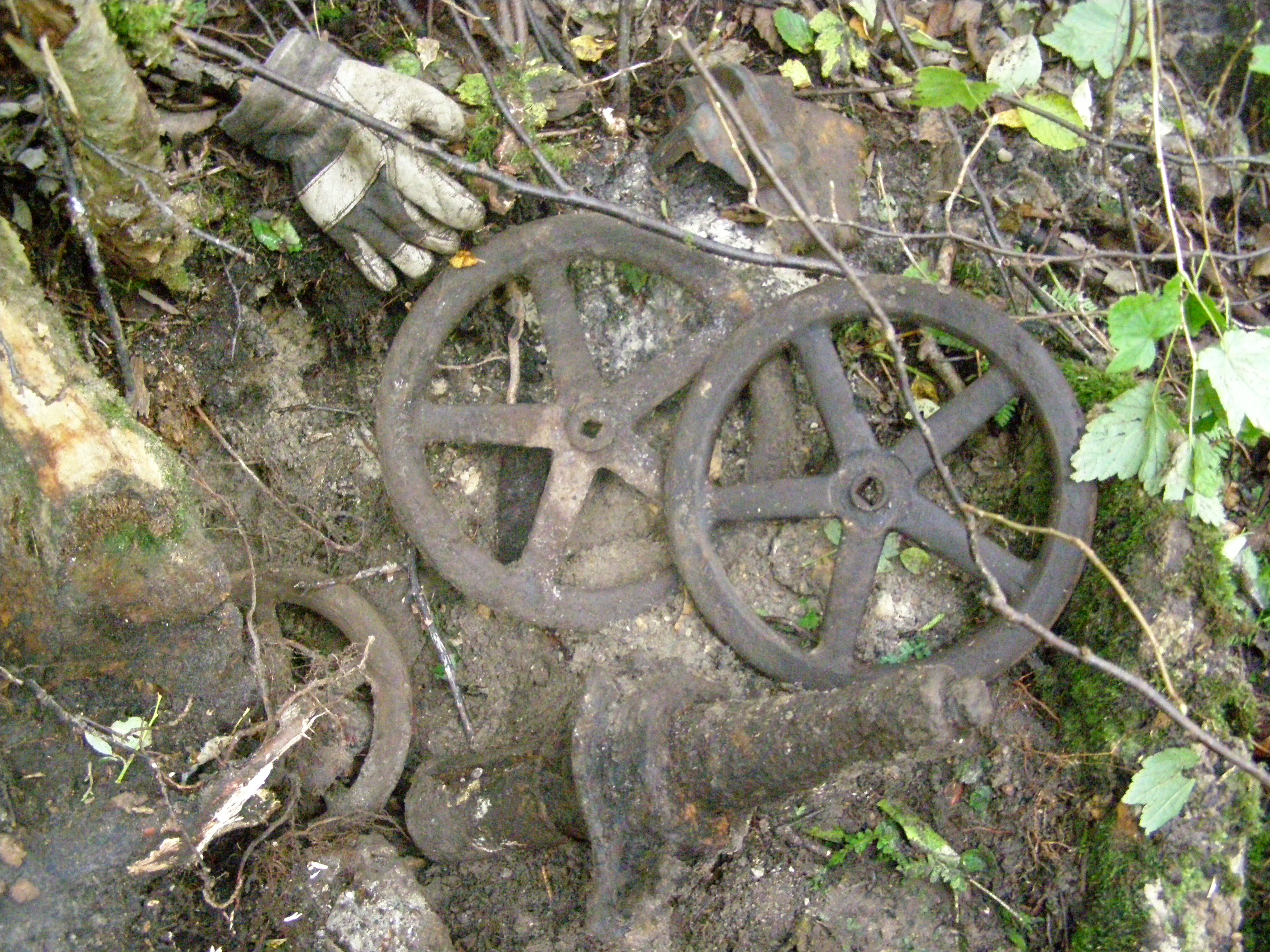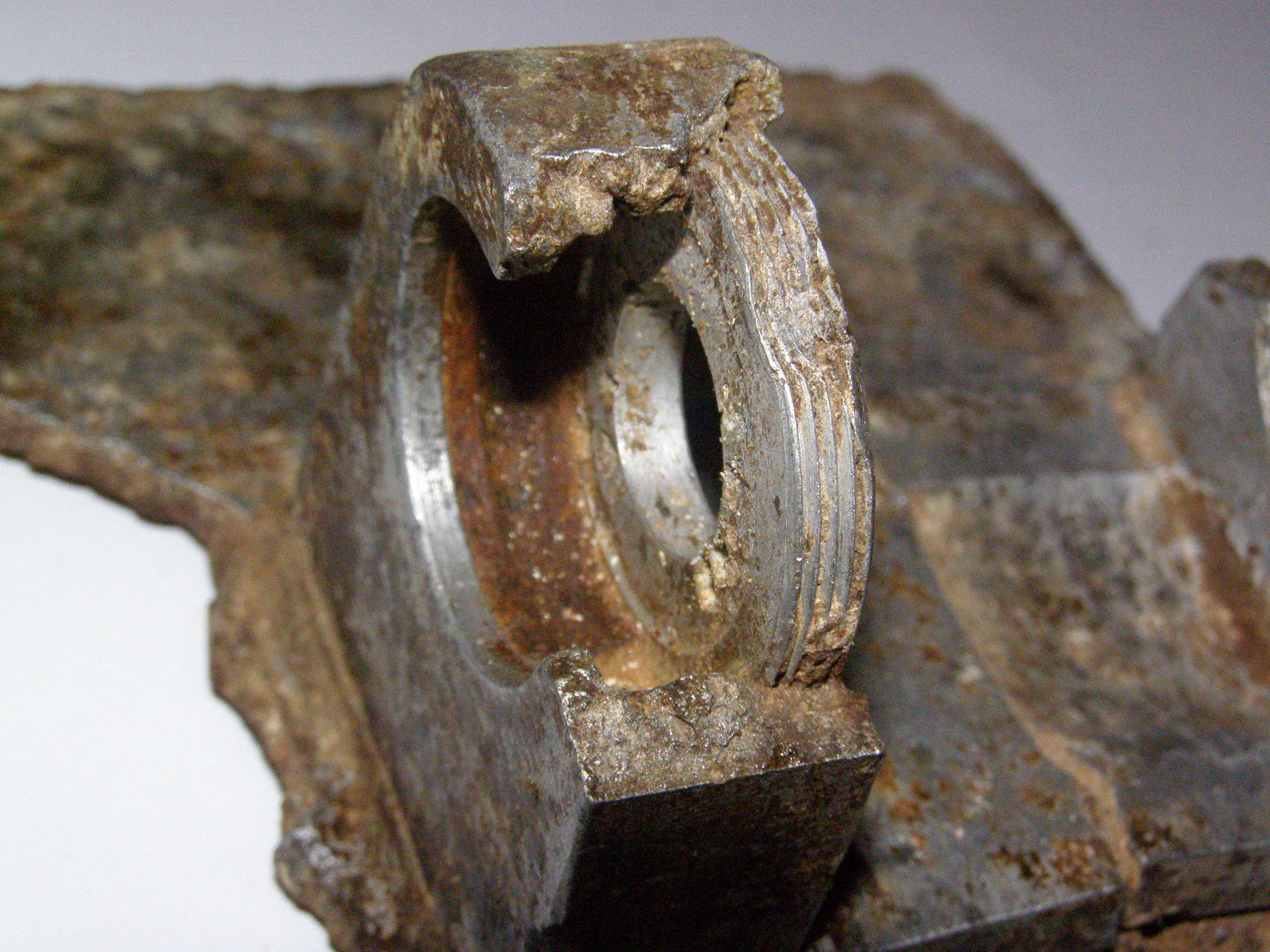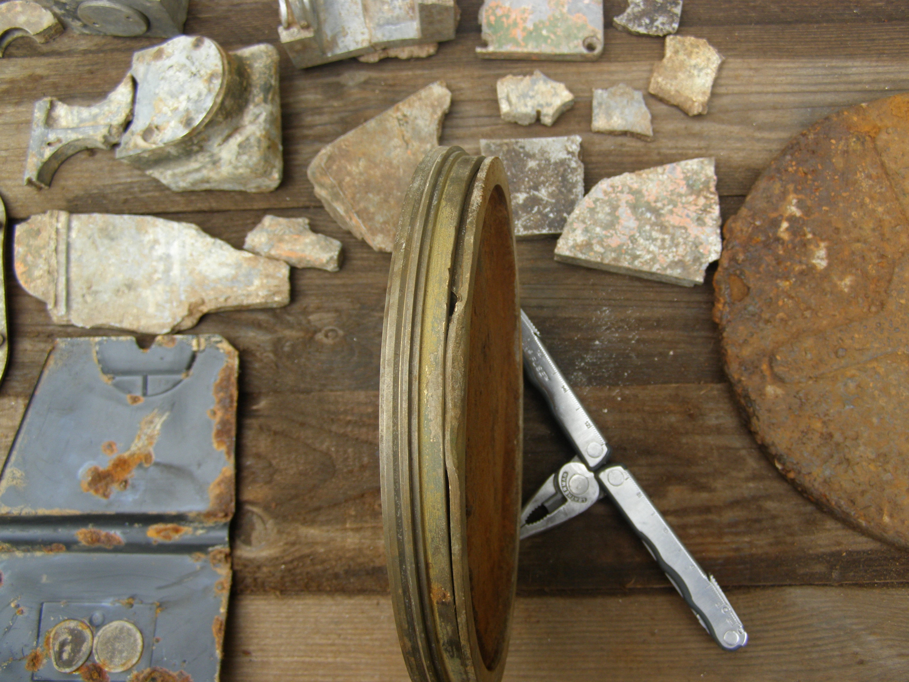 Pildil olevad tükid värvitud ühelt poolt saksa tehnikale omaselt oranži kruntvärviga.Värvitud pool moodustab midagi korpuse või karteri laadset ja sissepoole jäävad laagripesad ja muu.Pildil üks fragment kahelt poolt.
