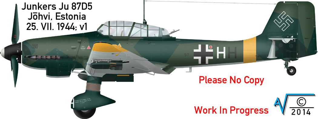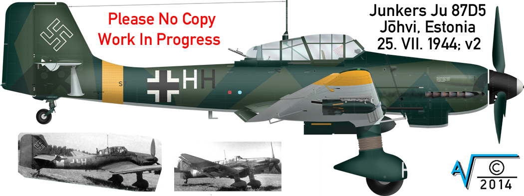 Siin on minu värvitahvel sellest I./SG 3, Junkers Ju 87/D-5 "Stuka" lennukist Teie hindamiseks; (25.juulil tuli alla õhutõrjetule tagajärjel üks Ju 87 10 km Jõhvist, pardalaskur Ludwig Hass sai haavata.