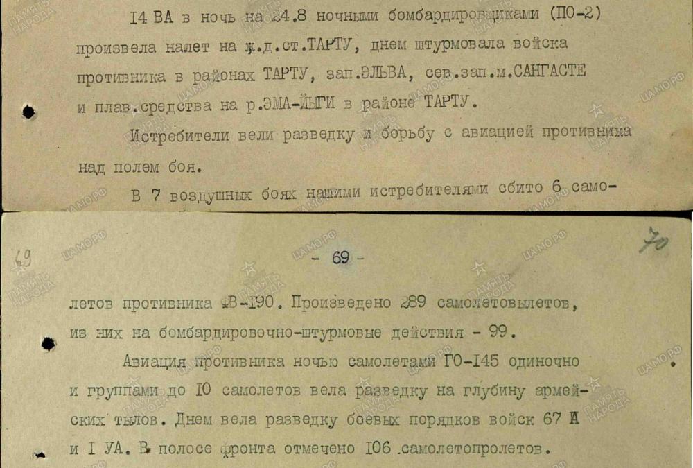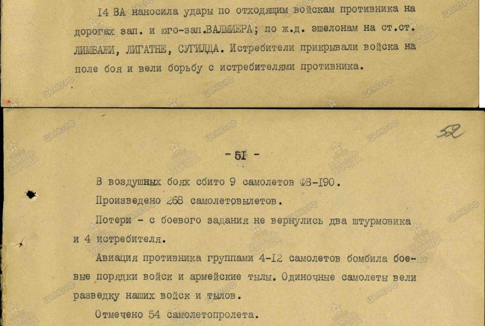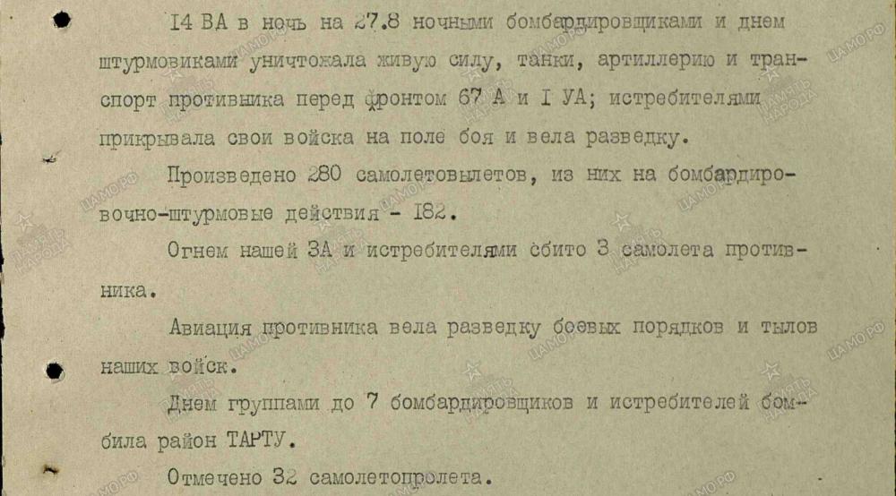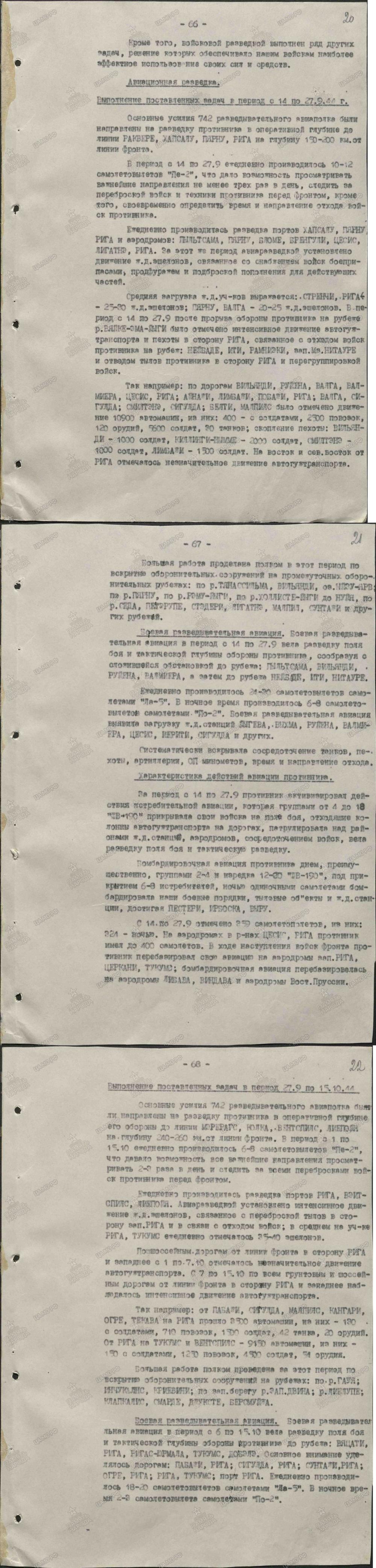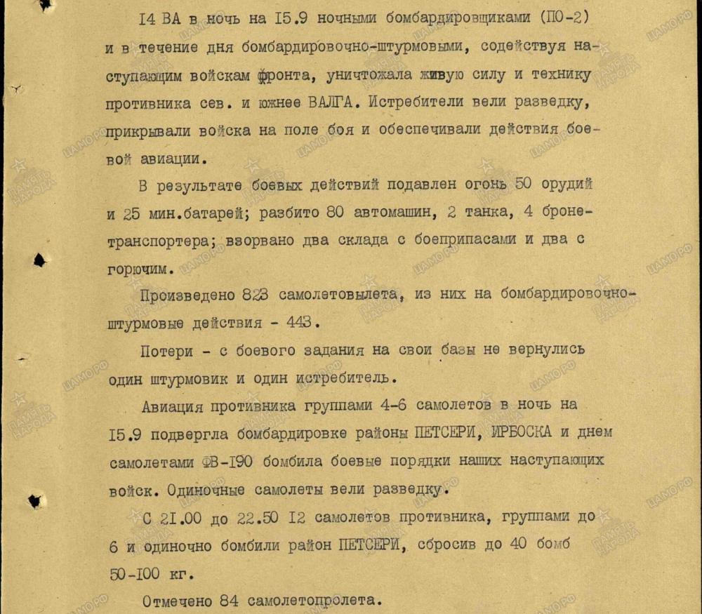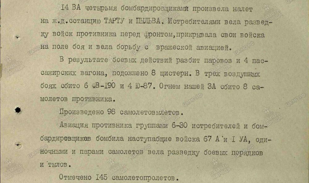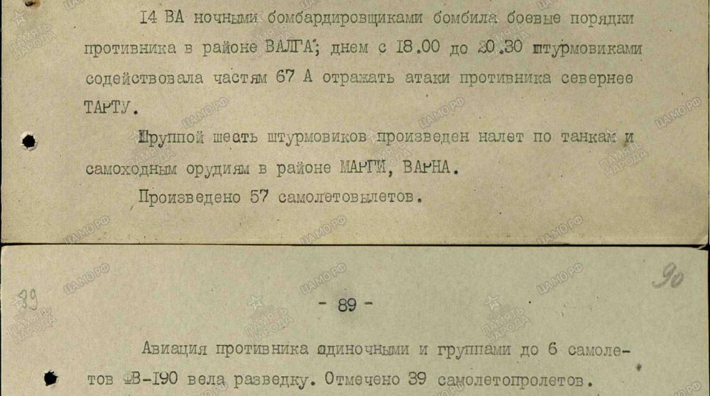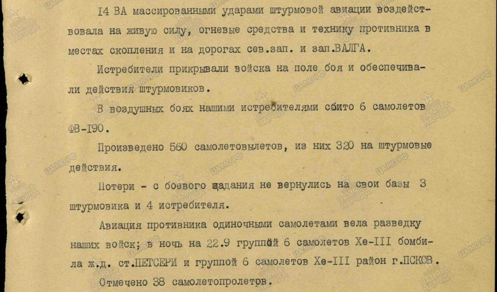 lennutegevuse kokkuvõtted 3. Balti rinde sõjapäevikust