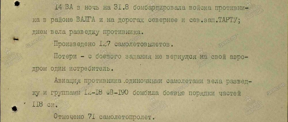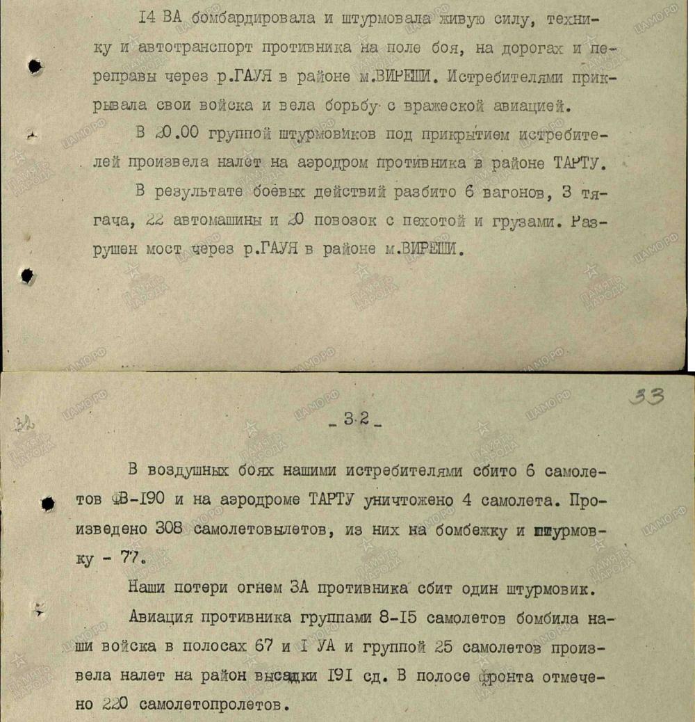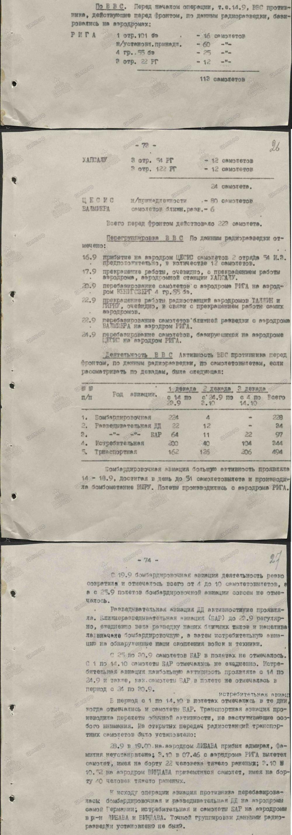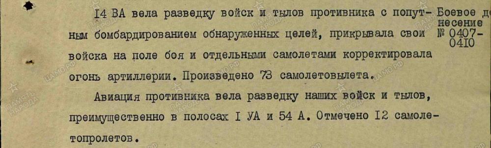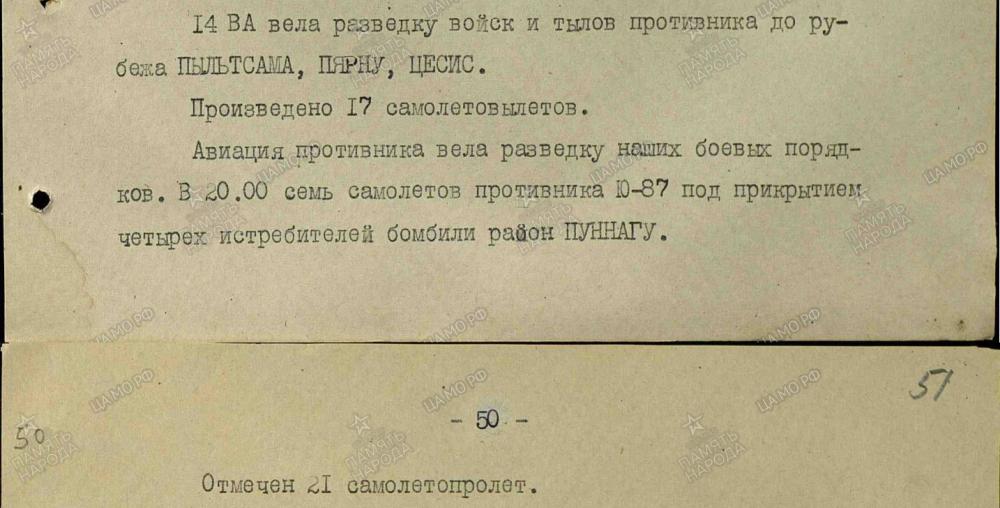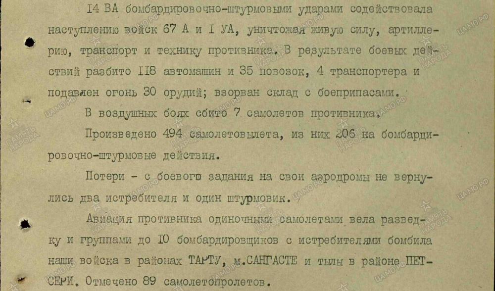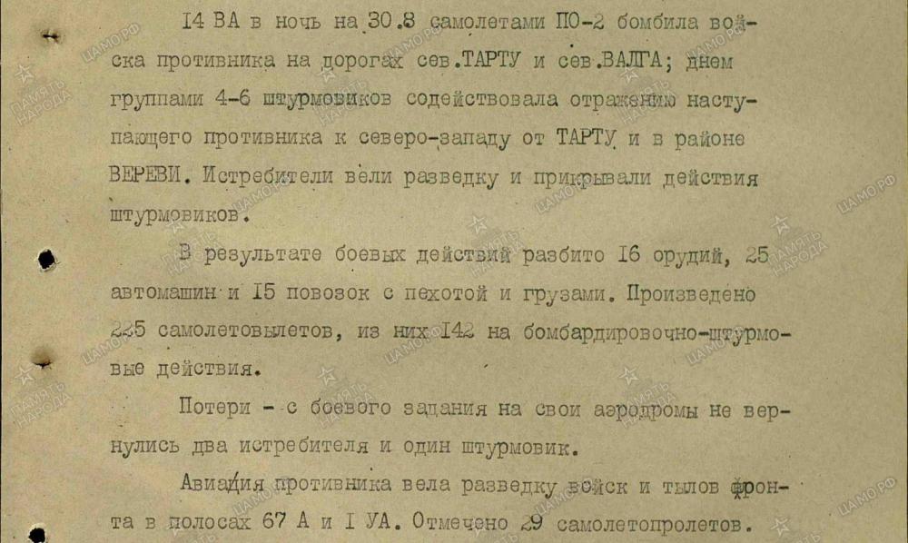 lennutegevuse kokkuvõtted 3. Balti rinde sõjapäevikust