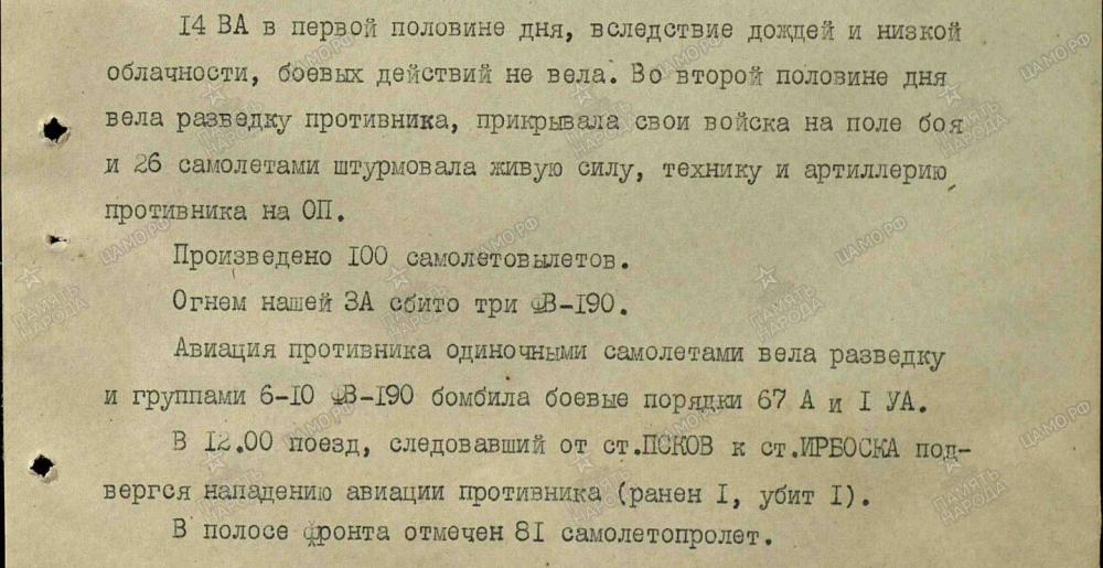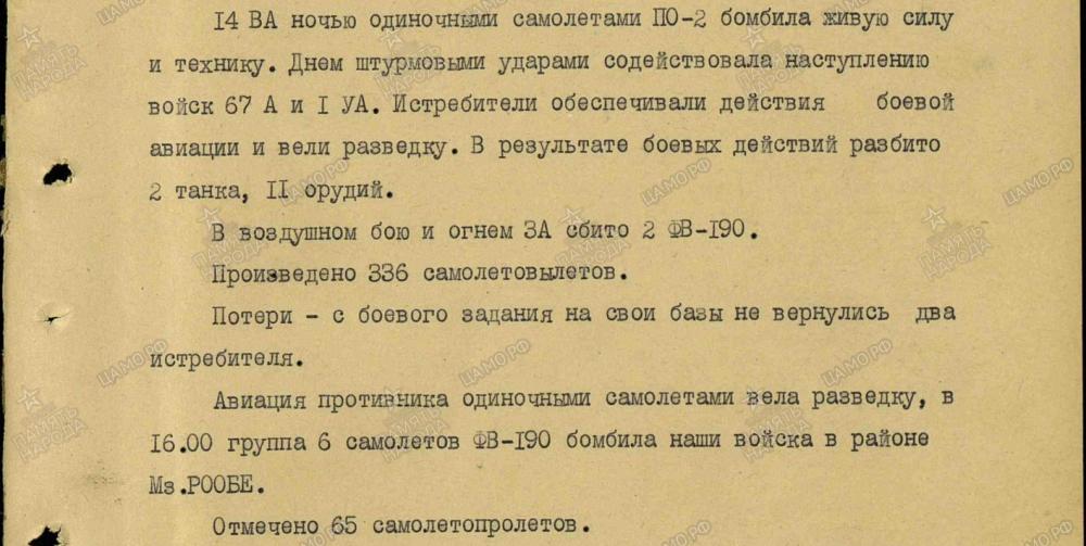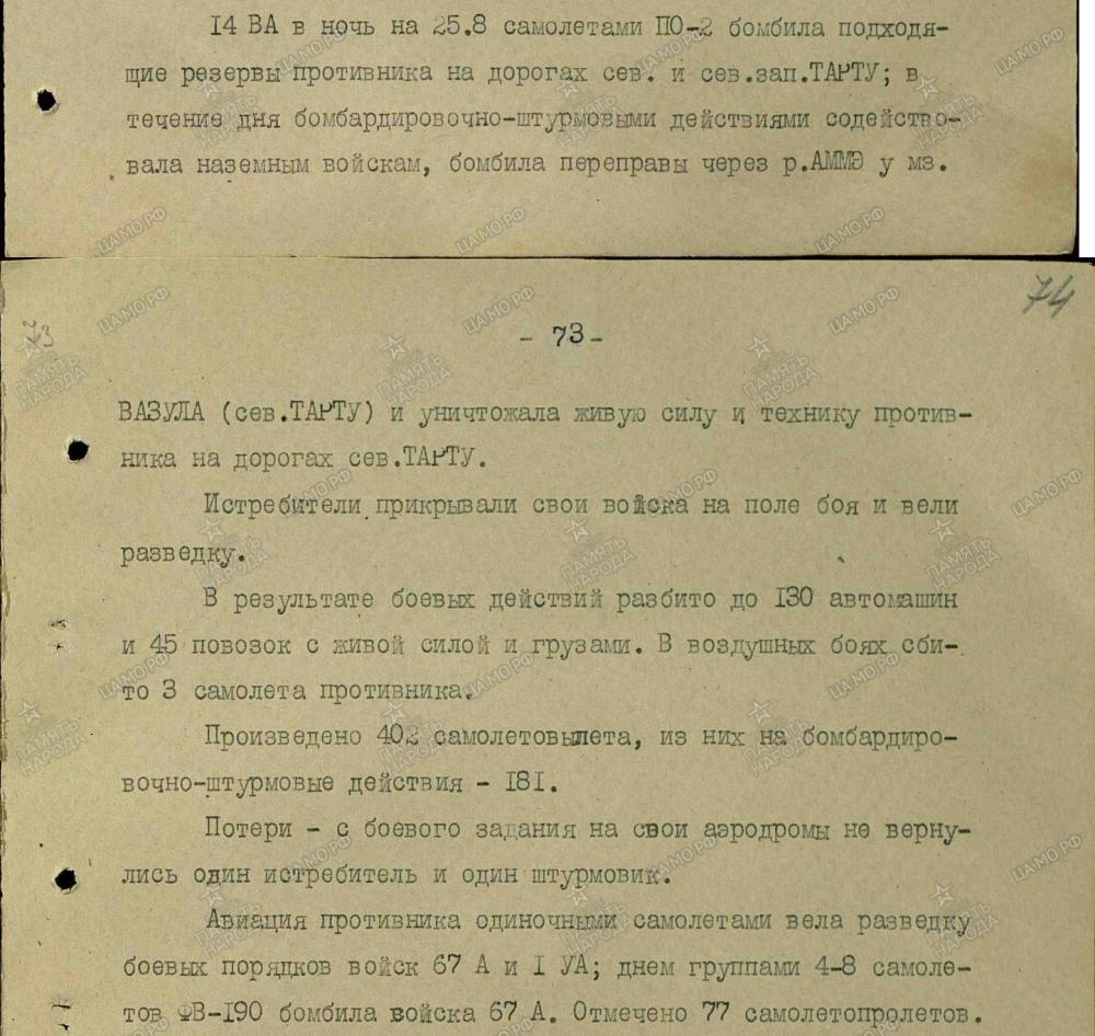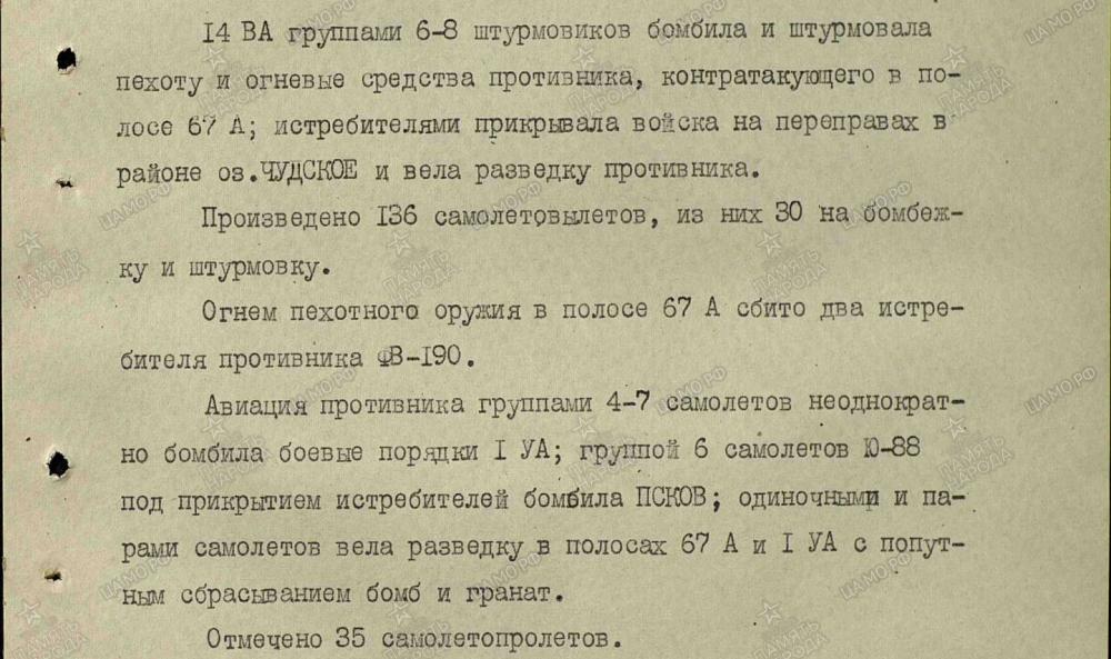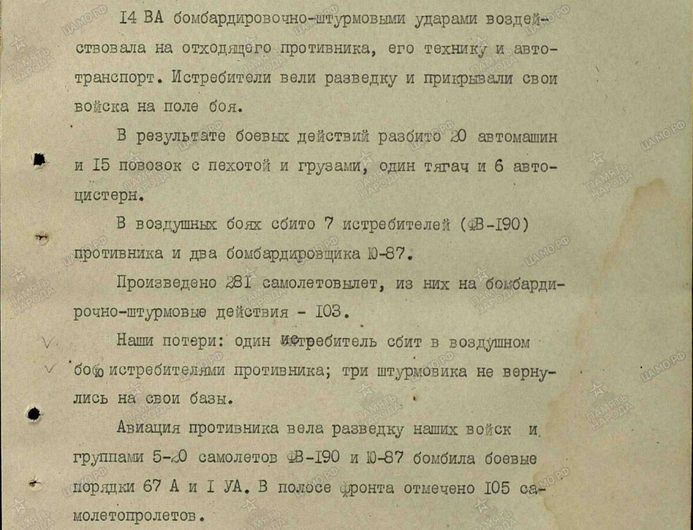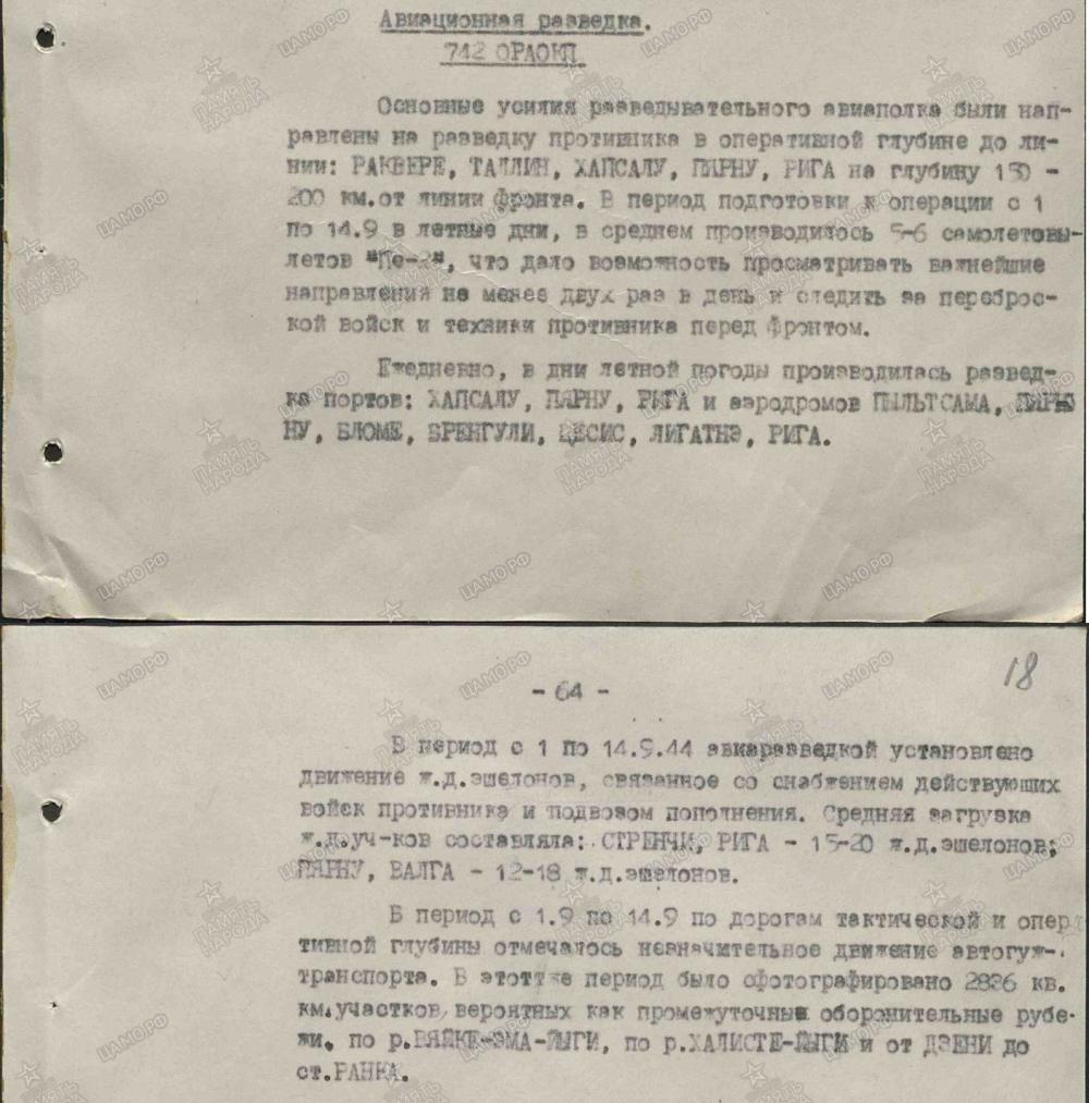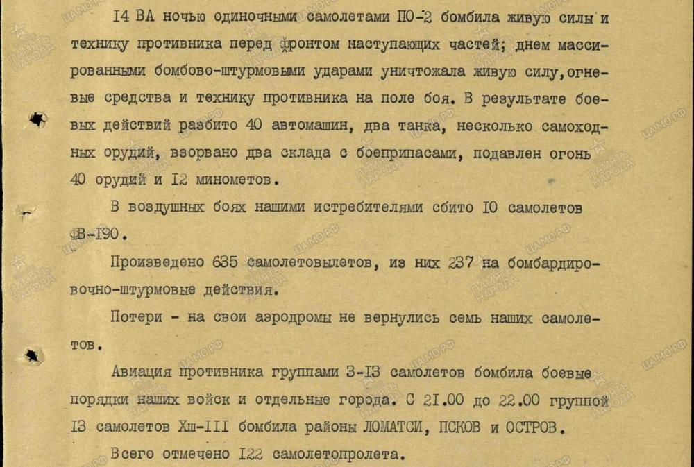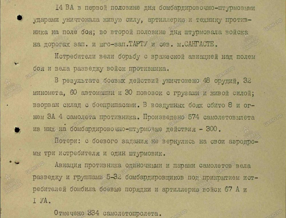 lennutegevuse kokkuvõtted 3. Balti rinde sõjapäevikust