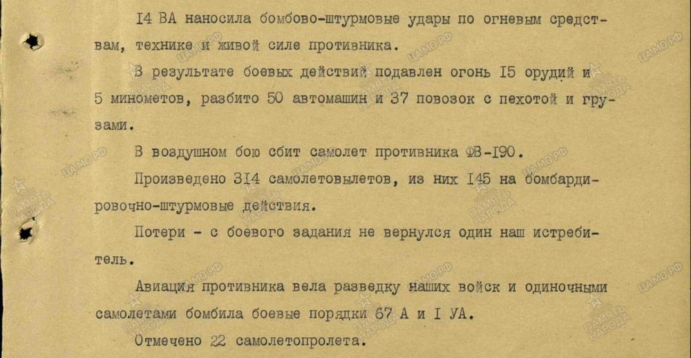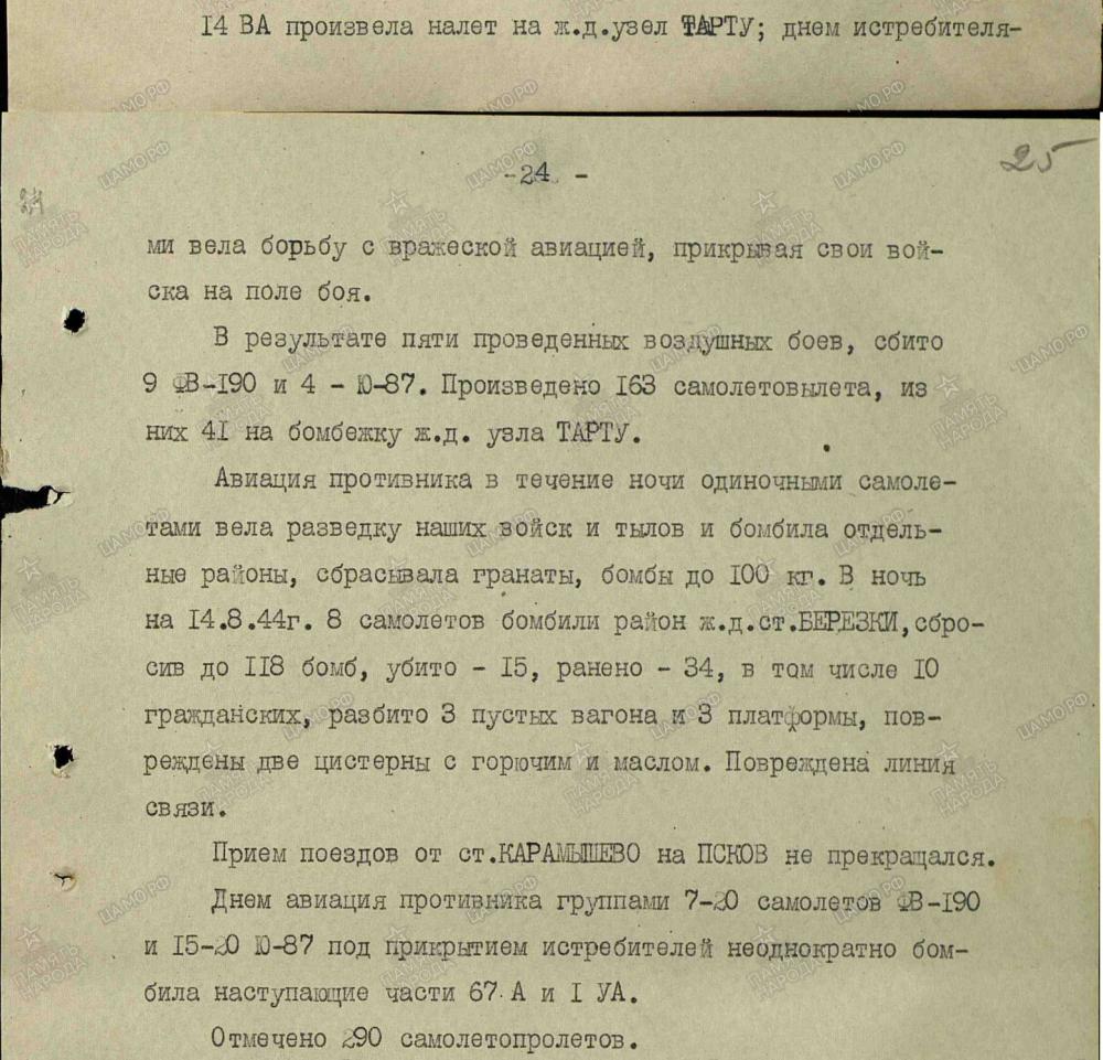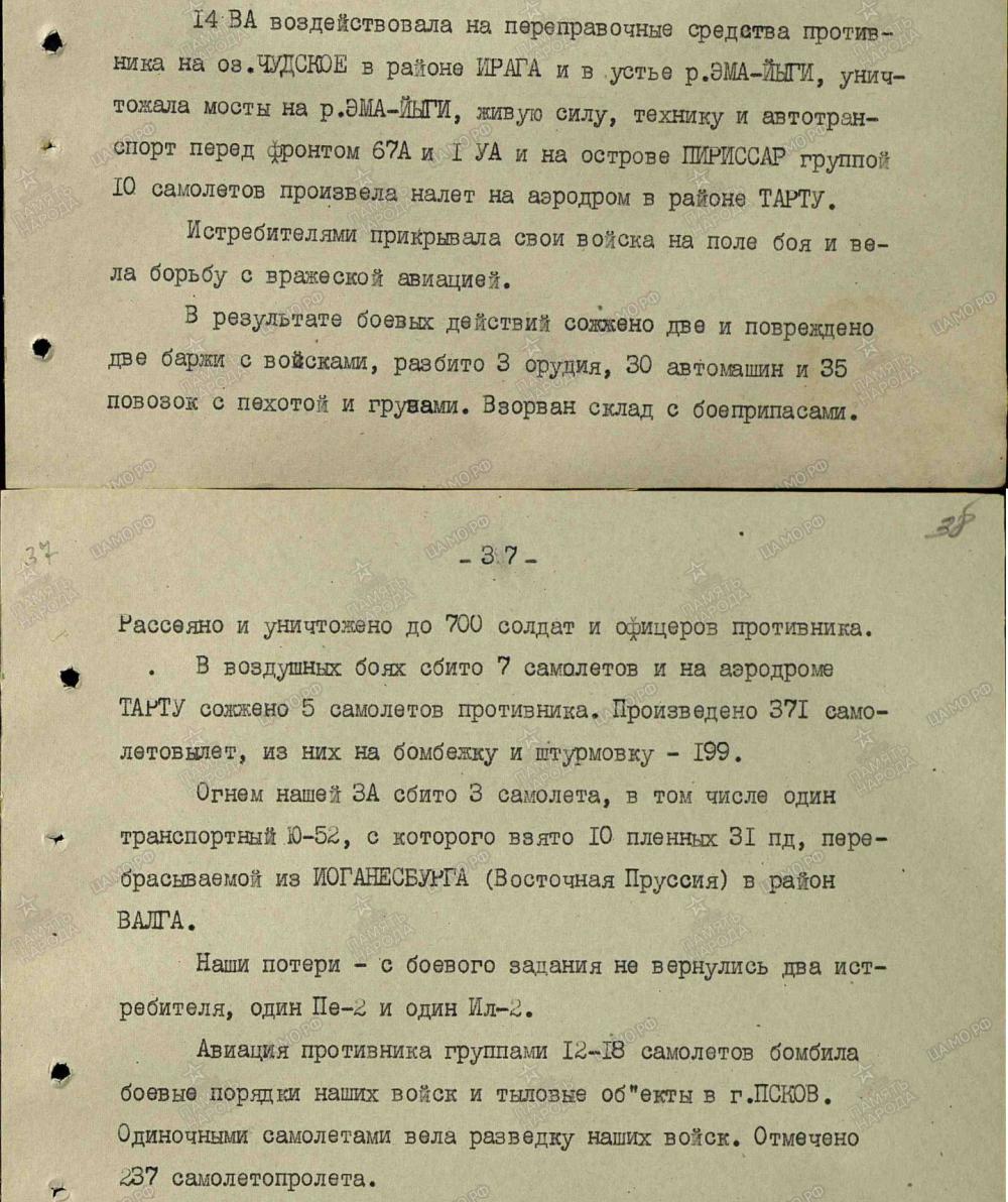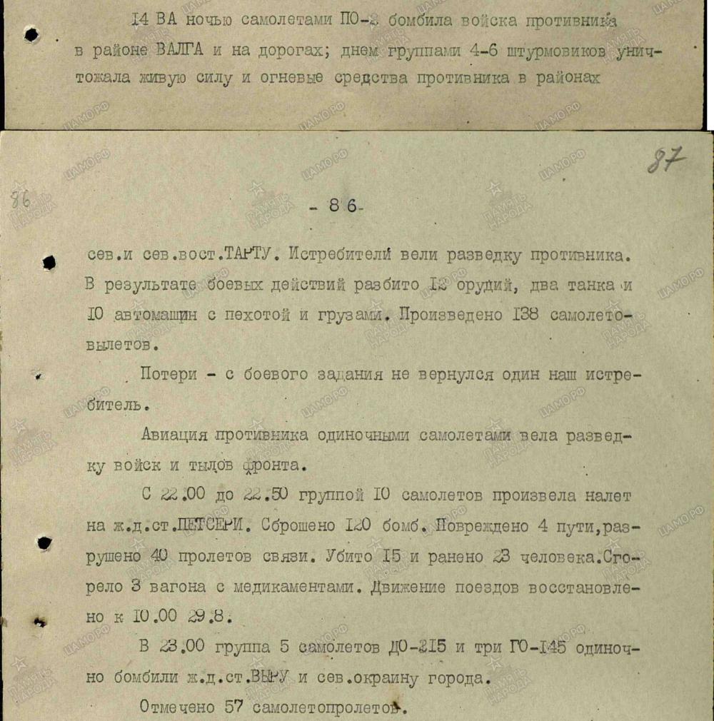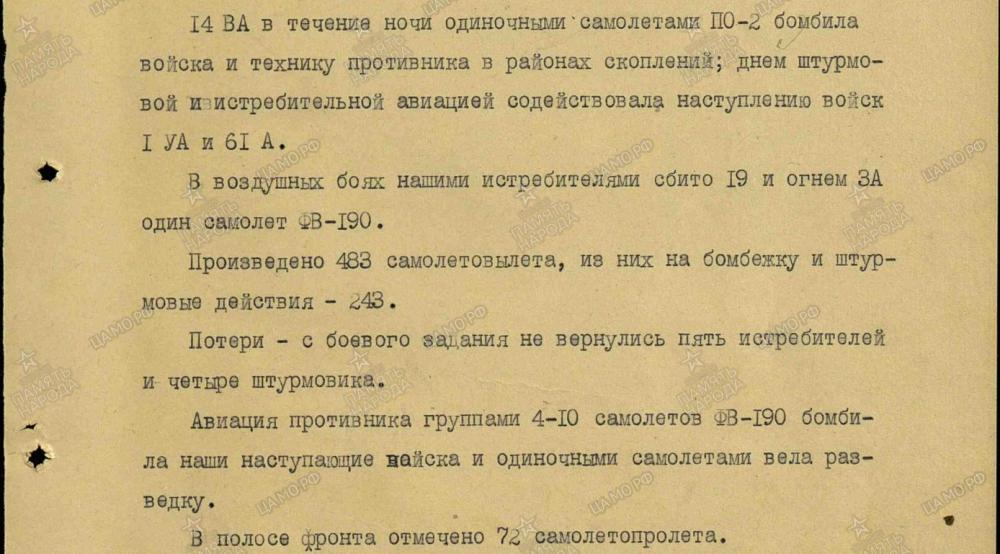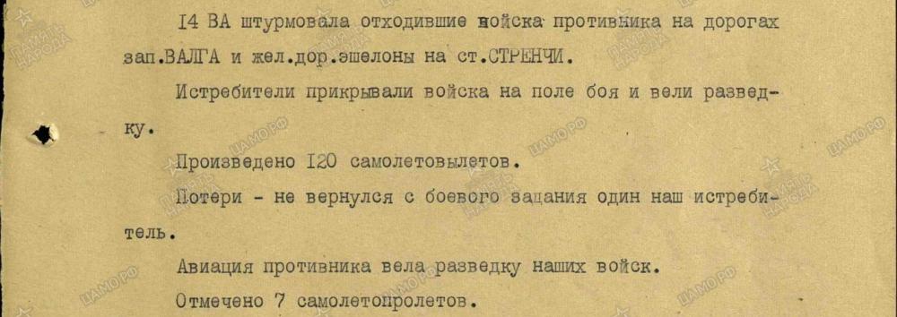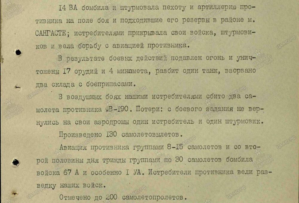 lennutegevuse kokkuvõtted 3. Balti rinde sõjapäevikust