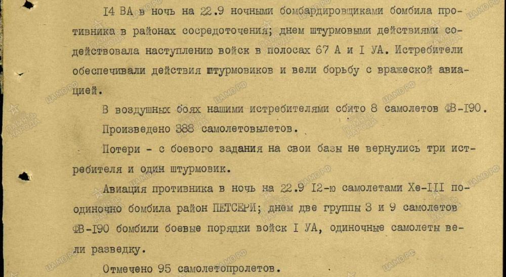 Õhutegevuse kajastamine 3. Balti rinde sõjapäevikus jätkub septembri keskpaigast.