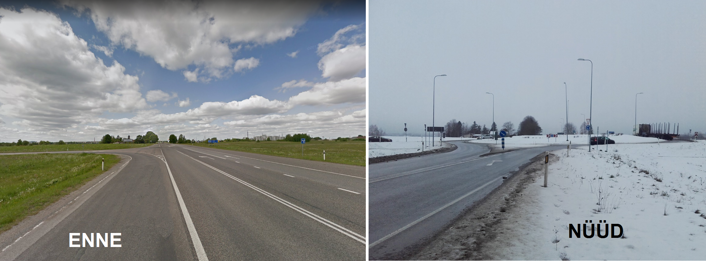 Panin kõrvale ka samast suunast vaate enne ringristmiku ehitamist, kus on ilusasti näha, et enne sinna kitsaste sõiduradadega ja vaatevälja varjava mullakuhilaga ringristmiku ehitamist, oli sellel ristmikul ohutut laiust ja ruumi igale maitsele, ning vaatevälja ei piiranud mitte midagi.