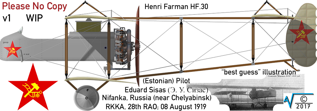 Сизас Эдуард — летчик-солдат. Родился 01.05.1894 в Санкт-Петербурге, 10-я линия Васильевского острова, дом 42, квартира 37. Курсант Русского авиационного корпуса, окончил в Англии военную школу летчиков в августе 1917-го, получил свидетельство 22.08.1917. Вернулся в Россию, где был зачислен летчиком в 10-й корпусной авиаотряд (27 сентября 1917 года). 3.11.1917 произведен в младшие унтер-офицеры. Вместе с отрядом в 1918 году эвакуировался в Москву, где был зачислен летчиком 2-го авиаотряда Калужской авиагруппы (с 8.08.1918). В 1919 году после переформирования Калужской авиагруппы стал летчиком 28-го рао. Погиб при катастрофе „Фарман-30“ в августе 1919 года. Саунин Максим — летчик-наблюдатель. В июле 1917-го был подпоручиком. Был даже командиром Гренадерского корпусного авиаотряда. С 29.12.1917 вр. и. д. командира 2-го авиадивизиона. https://www.znak.com/2017-12-22/tayny_s ... svoenletah