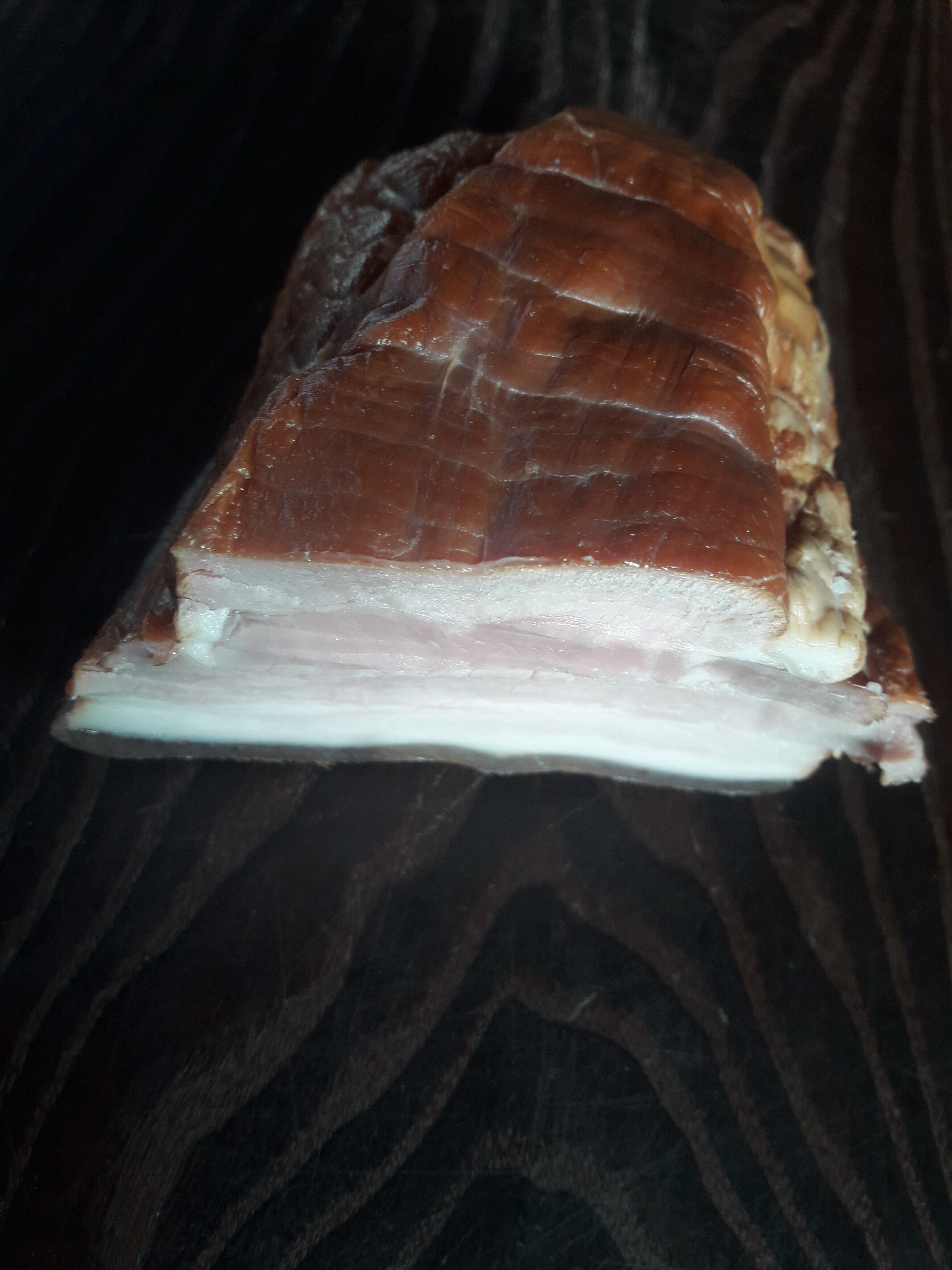 Suhteliselt madalal temperatuuril traditsioonilisel moodusel suitsetatud küljetükk maheda maitsega.