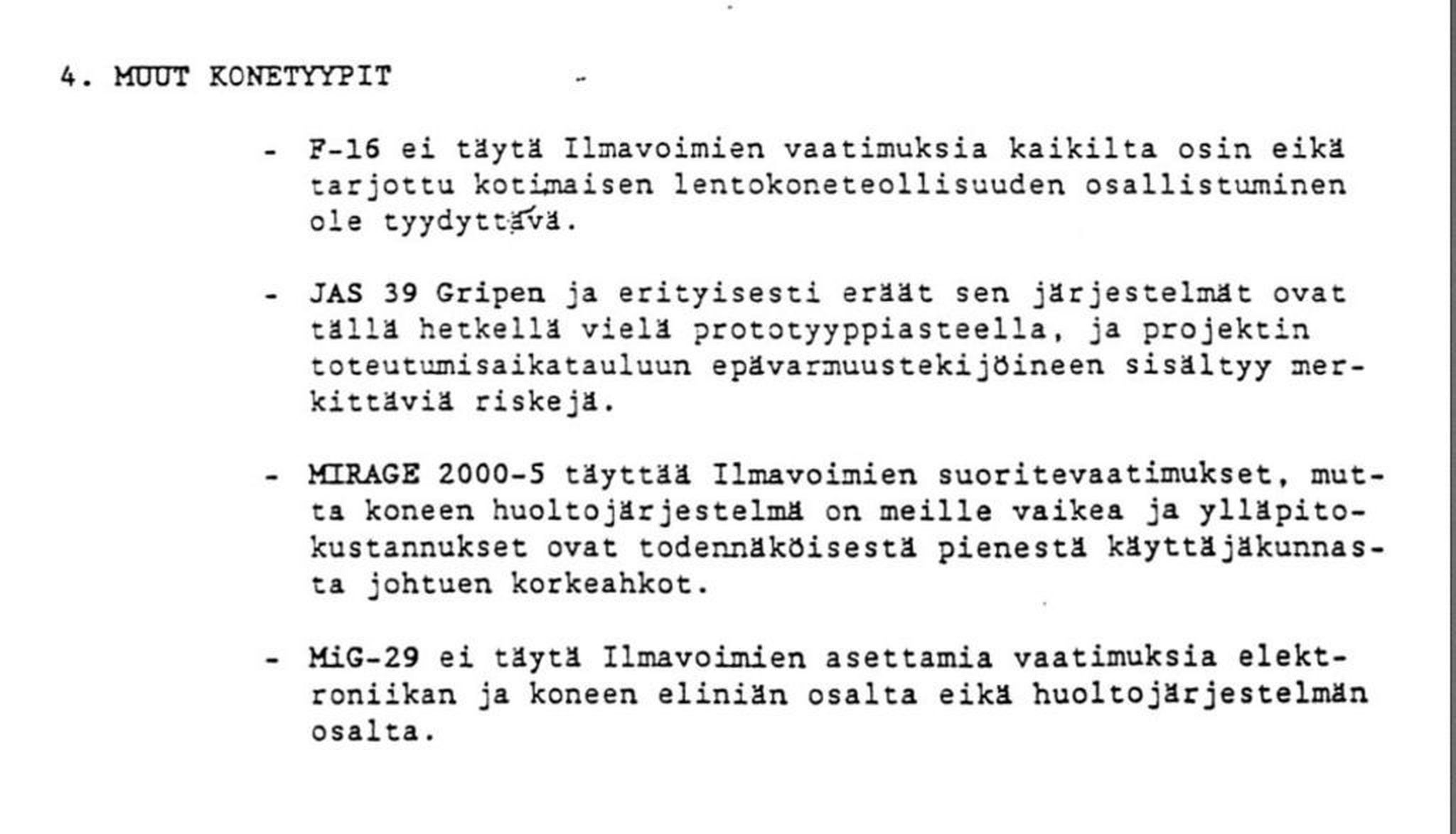 3. Gripen oli endiselt prototüübi staadiumis, kus soomlased oleks pidanud maksma (teadmata osa) arenduskuludest, lepingus oleks olnud pmts "lahtine arve"