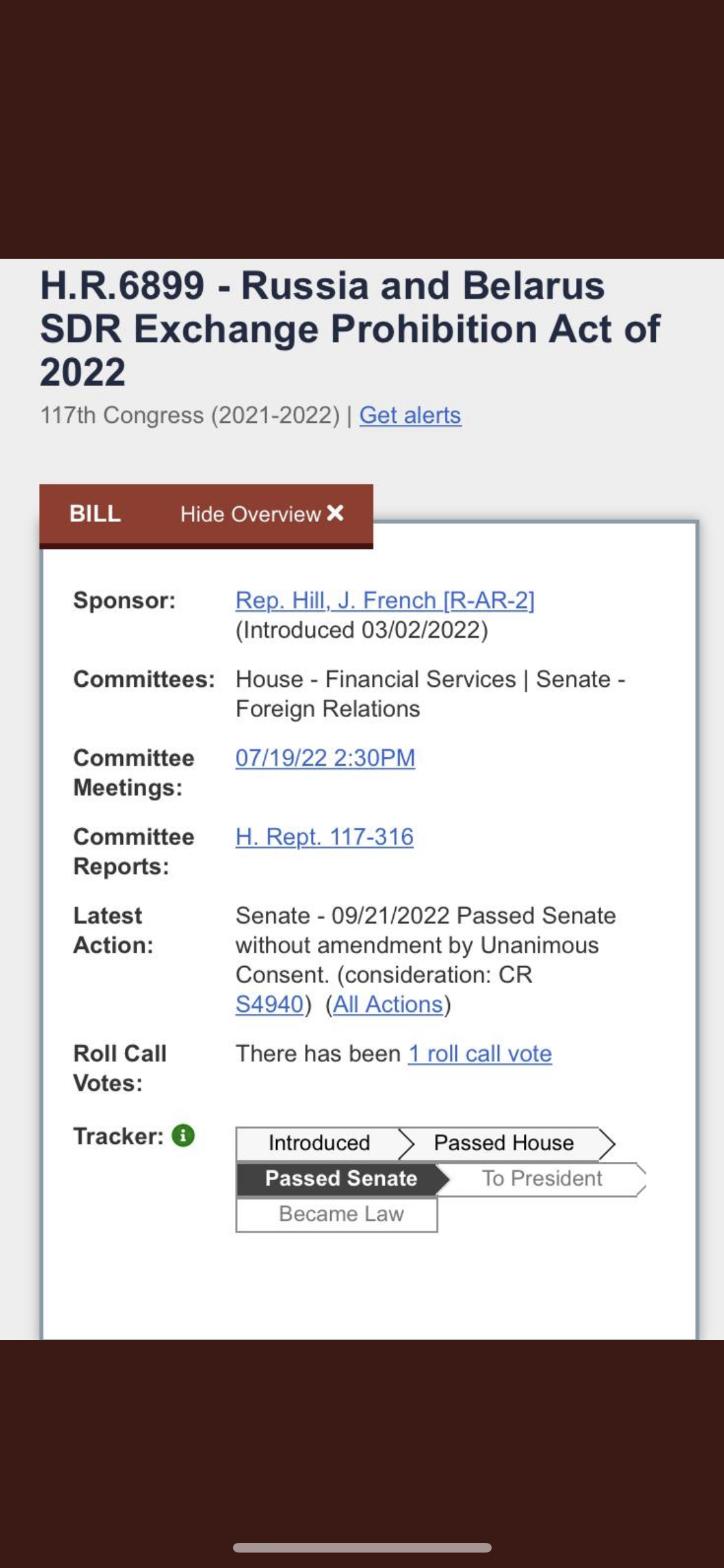 The U.S. Congress has approved the decision to block operations of U.S. Treasury Department to exchange SDR for Belarus and Russia for 5 years. The next step is Biden's signature. Once the law enters into force, Russia and Belarus will lose access to external financing from IMF.