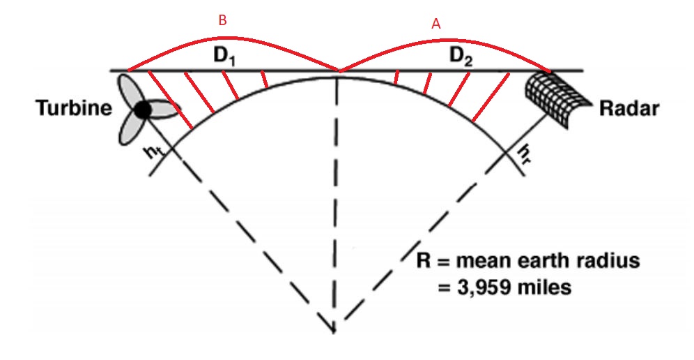 Ma ei tea kindlalt mis on olnud selle Määruse valemi loogika, kuid jah tundub, et lähtutakse samast Pütaagorosest. Kasutan edaspidi tekstis Raadiosüsteemi asemel Radarit, kuna sellel teema käis teoreetiline arutelu. Valemi eesmärk on ilmselt võimalus tuletada, kui kõrged takistused varjavad ideaalsel sfääril (praktikas maakera) olevat horisonti Radari eest. Lihtsustamise mõttes need Gideoniku lingilt võetud alus-joonised ei arvesta valguse ja raadiolainete kaardumist takistuste taha. Seetõttu on vaatekiired joonistel sirged. Valemites siiski arvestatakse lainete kaardumisega, ja see võimaldab "näha" veidi kaugemale geomeetrilisest horisondist. Kui nüüd vaadata allolevat pilti, siis horisondi taha jäävale alale peaks alas B kehtima valem: