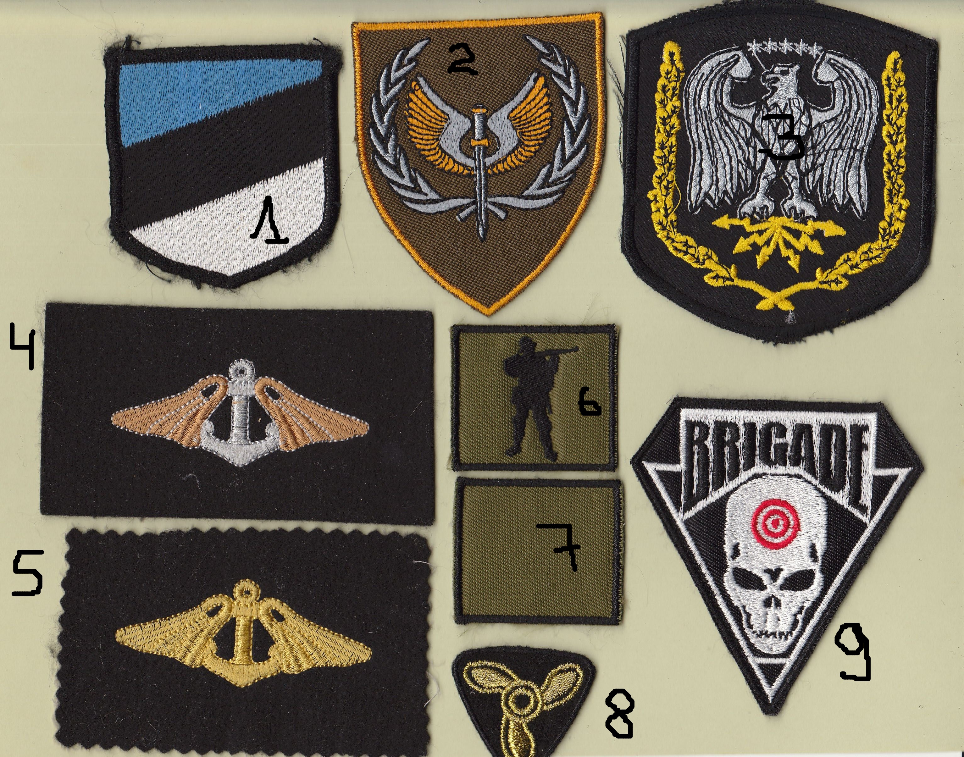 6 ja 7) Jah on praeguse Logistikapataljoni SBK kursuse märgid. Kokku peaks olema neid neli erinevat ? Tühi variant nagu siin/sõduriga variant/hõbe SE/kuld SE