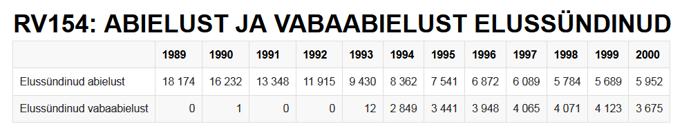 . https://andmed.stat.ee/et/stat/rahvasti ... iewLayout2Rahavahetajate nimekirja oli kantud 1 410 951 residenti, kellest 1 096 706 ka raha vahetamas käis. Keskmiselt vahetati raha 136,41 krooni eest.