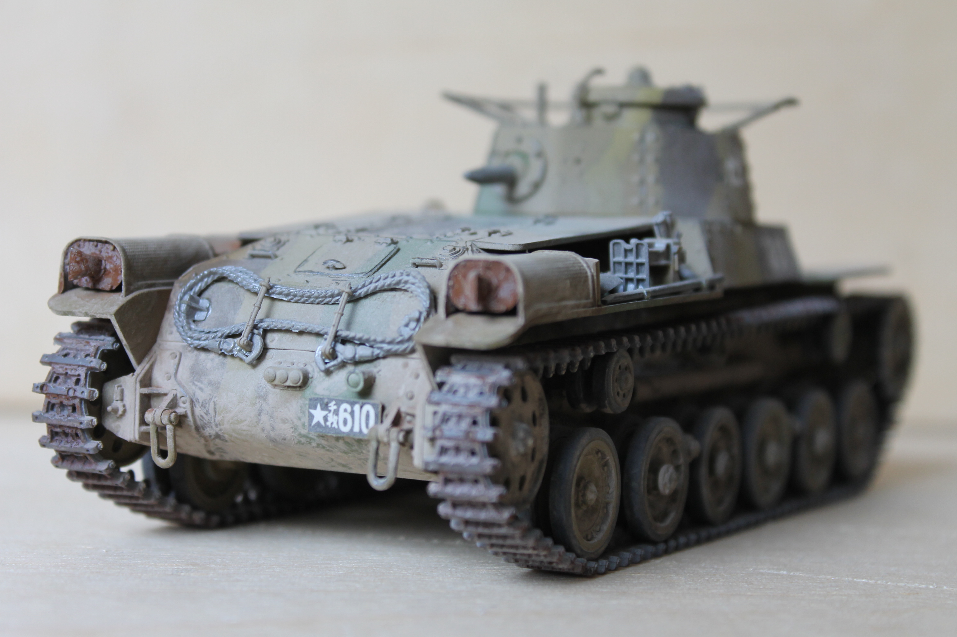 Loen siis Type 97 Chi-Ha valminuks. Kahjuks ei saa selle pildistamisega enam kuidagi sinapeale ja sellepärast ei olegi pildid eriti head. Tank valmis minu viimaste masinate kohta üli kiiresti, kõigest 10 päevaga, eks muidugi oma rolli mängis ka see, et roomikutega mässamine jäi ära. Eks hinnake ise: