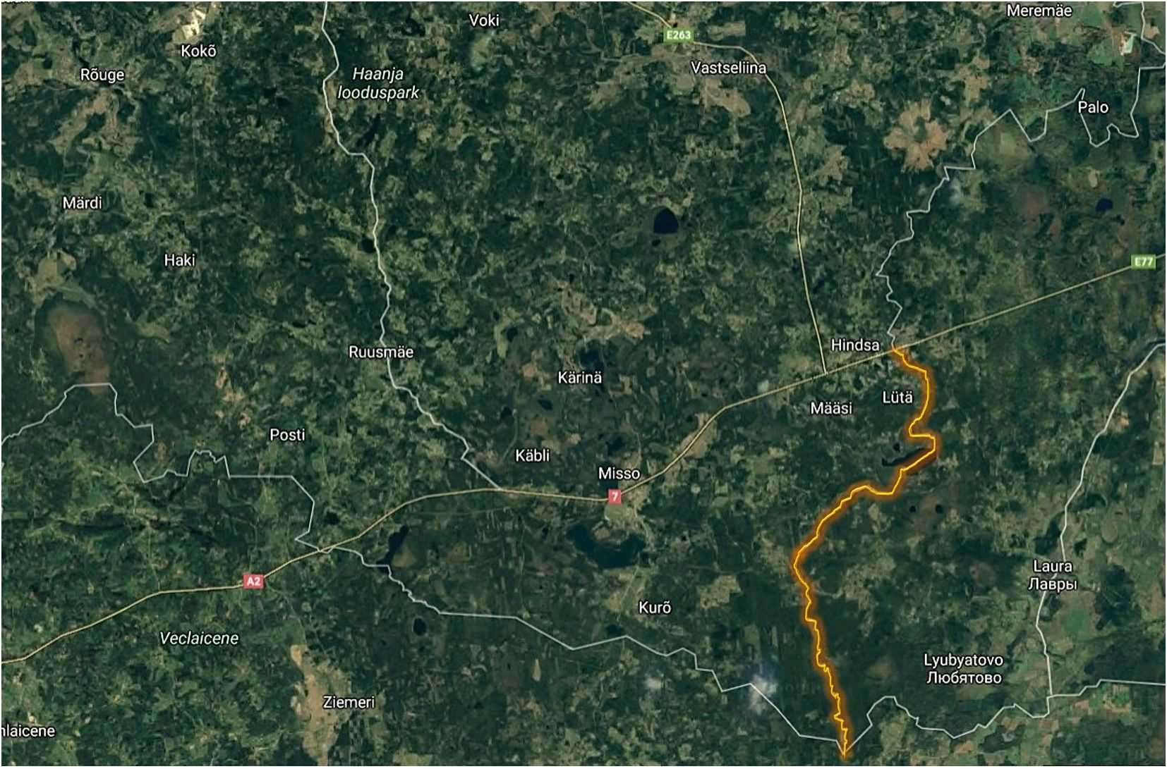 Joonis 1: kagupiiri ehitustööde esimene etapp hõlmab piirilõiku kolmikpunktist Luhamaa piiripunktini https://www.politsei.ee/et/juhend/piiriehitus/3