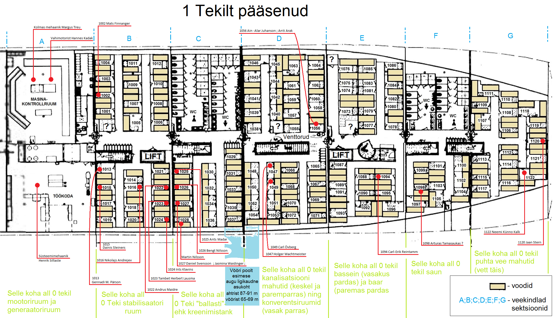 - lahkus masinaruumist ja jõudis varuväljapääsu kaudu 8. tekile, kui kreen oli praktiliselt 90°.