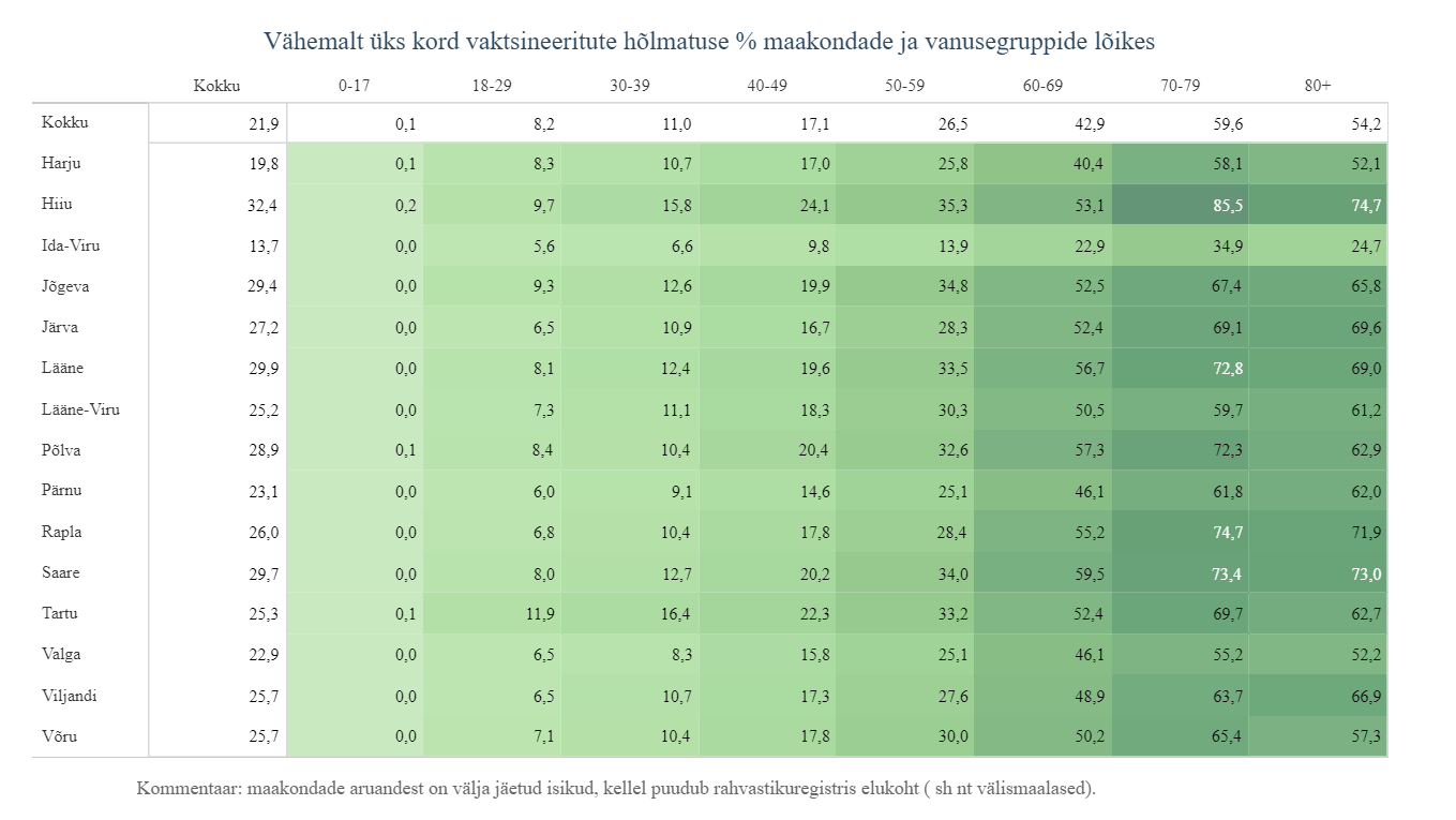 kes keelduvad vaktsiinist ? Seetõttu on on meil : "Ainult 70% (peast pandud number)vanuritest vaktsineeritud" ja nooremaid ei saa veel süstida. On kuskil mingi number välja käidud kui paljudele üle 65-aastastele on vaktsiini pakutud,