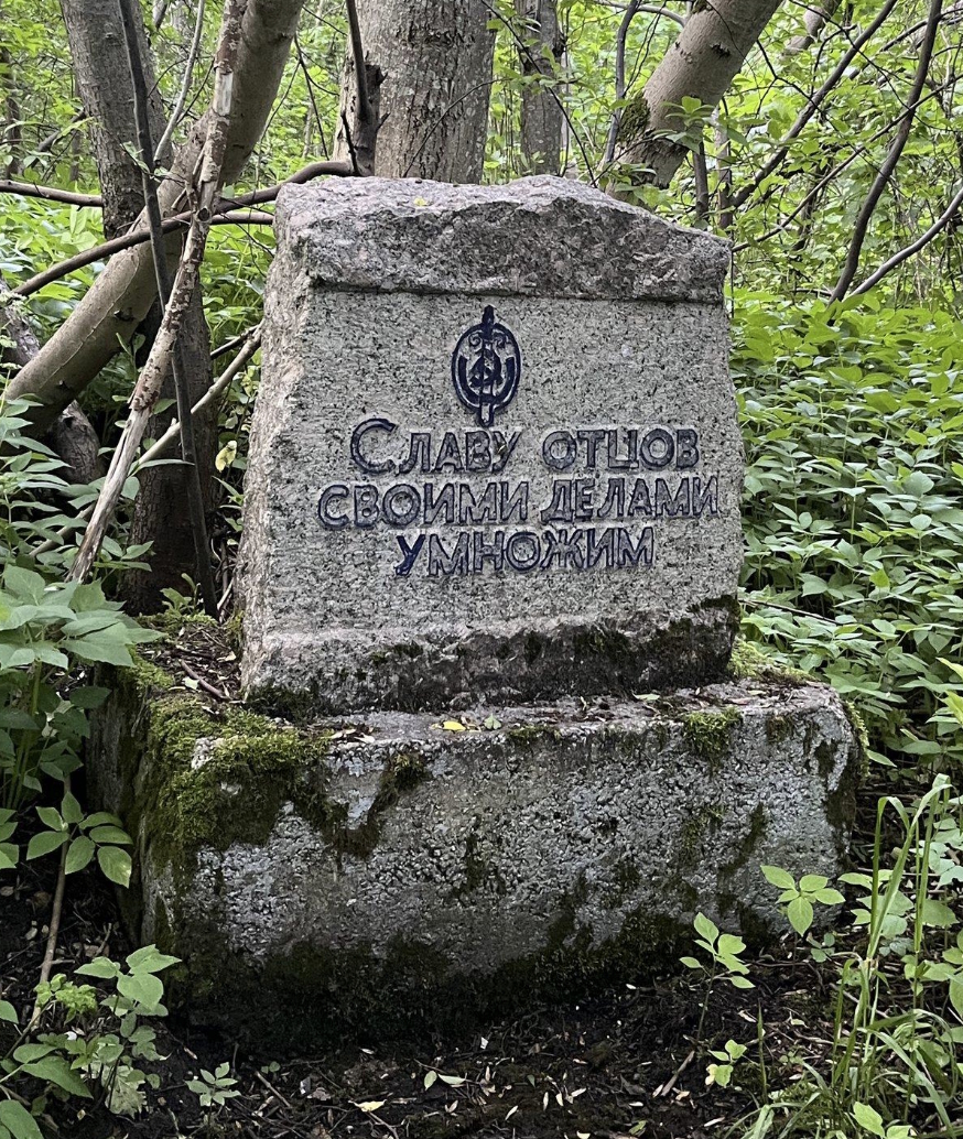 [Harku] (d)aatšarajooni ja endise vanglaala kõrval asus riigimaal veel hiljuti kivi, millel oli näha punasümboleid. Ajaloolane, giid ja matkajuht Heinart Puhkim teab, et see on endise repressiivorgani NKVD vapp. Tekst kivil kõlab eesti keeli umbes nii: „Suurendame oma tegudega isade kuulsust.“