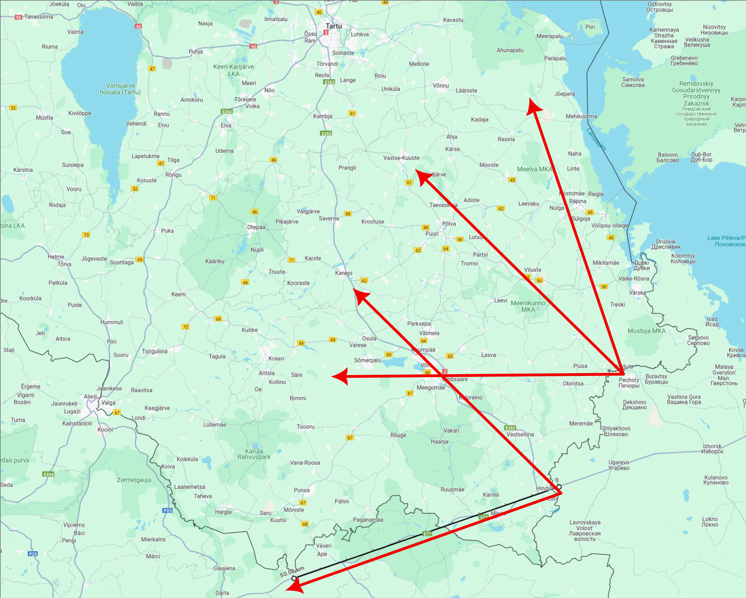 Misasi segab selle rohkearvulise teedevõrgu ääres tegemast sama, mida Soome plaanib teha? Kui vastast mitte enneaegselt seisata, siis ei lähe ta nendele väikestele teedele, vaid üritab kiiresti edeneda mööda suuri teid. Sama rohkearvuline teedevõrk muudab maa-ala kaitse jätkusuutmatuks nagunii, sest sul pole piisavalt vägesid, vältimaks kaitseliinil olevate vägede ümberhaaramist - ainus toimiv lahendus seal piirkonnas oleks loovutada veerand Eestit ning seada pidav kaitse sisse Väike-Emajõe-Võrtsjärve-Suur-Emajõe joonel.