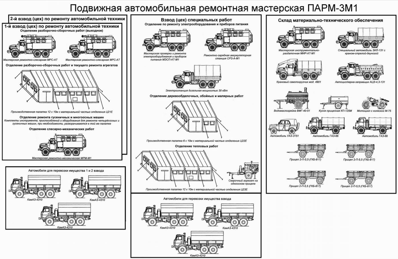 . ja seda veerevat tehnikat oli meie kolonnis ikka üksjagu. autonoomse liikuva välitöökoja tabel-relvastusse kuulus 30 ühikut ratastehnikat, see oli siis ikka koos saba ja sarvedega et iseseisvalt toimetada, kaasaarvatud telgid-köögid, leivaauto ja muu mudru. kes kirillitsat tönkab võib guugeldada парм-3м1 , seal kenasti väljatoodud mis selle töökoja koosseisu kuulus, isegi frantzusi willis ära mainitud