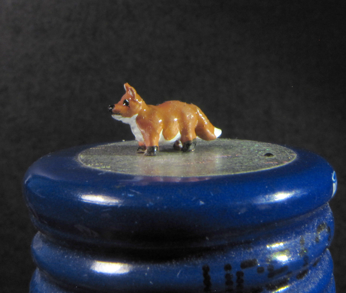 Sai siis ka 2cm kõrge inimese peal kätt proovitud. Ei noh 2mm läbimõõduga näole meigi tegemine oli hardcore, ehkki sai siit foorumist loetud nippe kasutatud (algul oli pool nägu ripsmemusta täis, siis pool nägu silmavalget ja huulepuna täis; lõppeks silmaterad sai terava tiku otsas halliga tehtud. Ja siis silmad-suud alles ihuroosaga mõõtu värvitud. Ega isegi kellasepaprillidega ei näind täpselt, mis sealt välja tuli, supermacro foto peal on näha, et asjad on ikka enamvähem omal kohal.