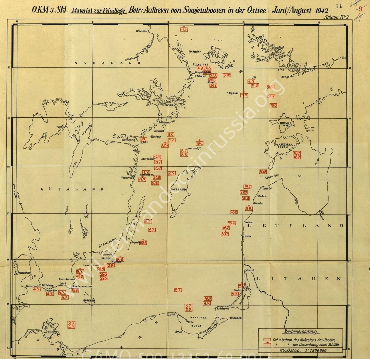 Tätigkeit sowjetischer Uboote außerhalb des Finnischen Meerbusens in der Ostsee von Mitte Juni bis Mitte September [1942].