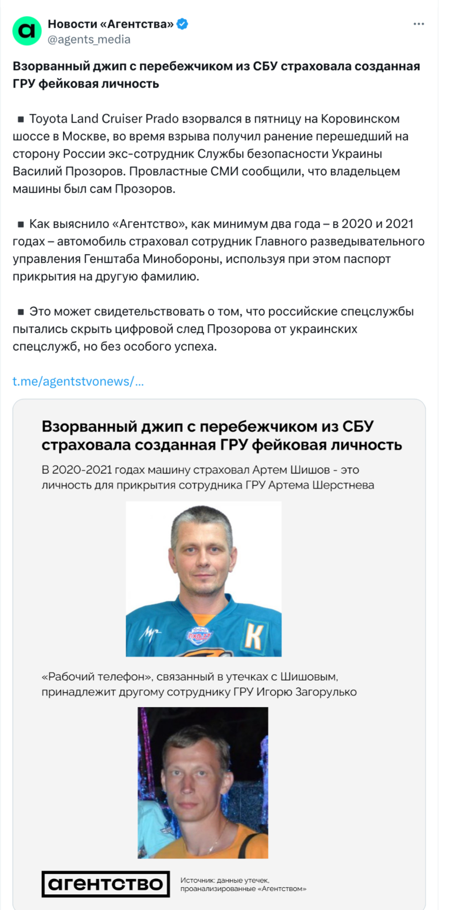 Autopommiga pihta saanud SBU ülejooksik Prozorov töötas tänasel päeval oma võrgistikuga tõenäoliselt GRU-le, sest too auto oli seotud selliste meestega.