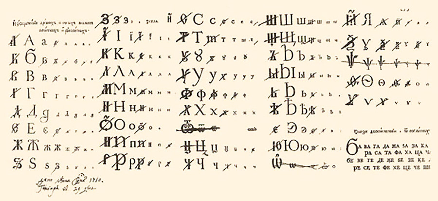 Ilmselt siis Peetri-aegse reformi tabel, aga ideoloogilistel kaalutlustel võidi tõesti kasutada veel Peetri-eelseid, kreeka tugevate mõjudega tähti.
