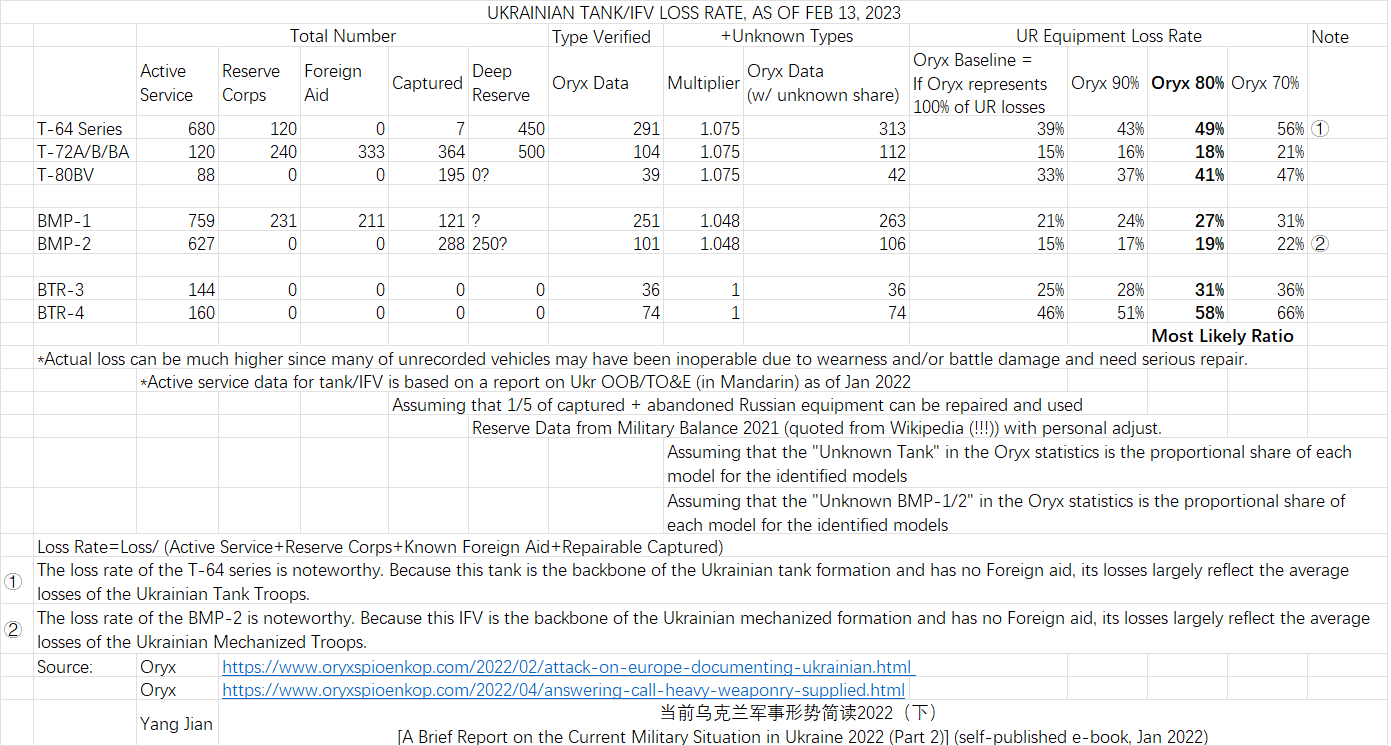 Ma pakuks, et igate pidid vinks-vonks ja tõenäoliselt ei ole üüber-riikide/organisatsioonide luureorganite hinnangud palju täpsemad. Seal muidugi ei ole kõike, aga sisalduvad peaks moodustama venkude soomusväe tuuma + reservi. Ja sama ka ka Ukraina kohta käib. Enne järelduste tegemist on äärmiselt soovitav kõik kommentaarid/märkused piltidel mõttega läbi lugeda. Loomulikult tänapäeva autorluskriisis autor andmebaase ja kalkulatsioone ei jaga....