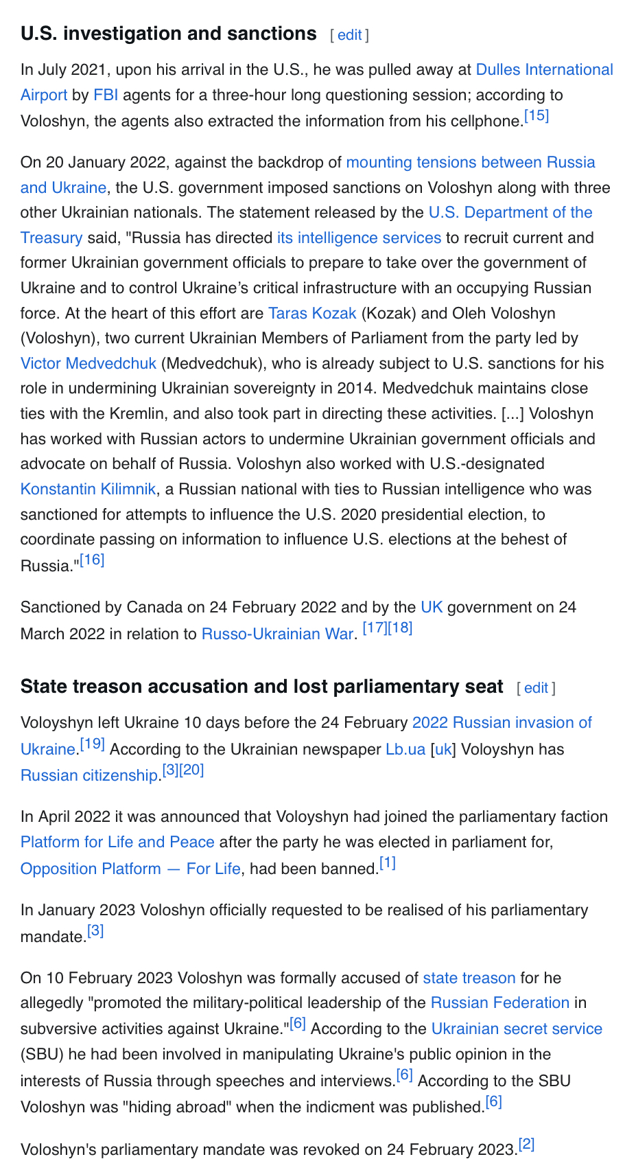 Ehk siis, riigikaitse ja riikliku julgeoleku nõukogu kehtestas Porošenkole ja veel neljale oligarhile sanktsioonid - kahtlustuse tõttu riigireetmises ja terroristliku organisatsiooni aitamises. Järgmisel päeval alustas riigiprokuratuur uurimist isikute vastu. Fraktsiooni "Euroopa Solidaarsus" liikmed blokeerisid protestiks Raadas kõnepulti 2 päeva. Porošenko teatas, et kaebab sanktsioonide vastu kohtusse.On 12 February 2025, Poroshenko was sanctioned by Zelenskyy through the National Security and Defense Council of Ukraine on suspicion of “high treason” and assisting a terrorist organization, which Poroshenko said was "politically motivated".[193] Apart from Poroshenko, four other oligarchs - Ihor Kolomoyskyi, Gennadiy Bogolyubov, Kostyantyn Zhevago and Viktor Medvedchuk - were also sanctioned.[194] The next day, the Ukrainian Prosecutor General's Office announced the opening of criminal investigations against Poroshenko and other sanctioned individuals.[195]