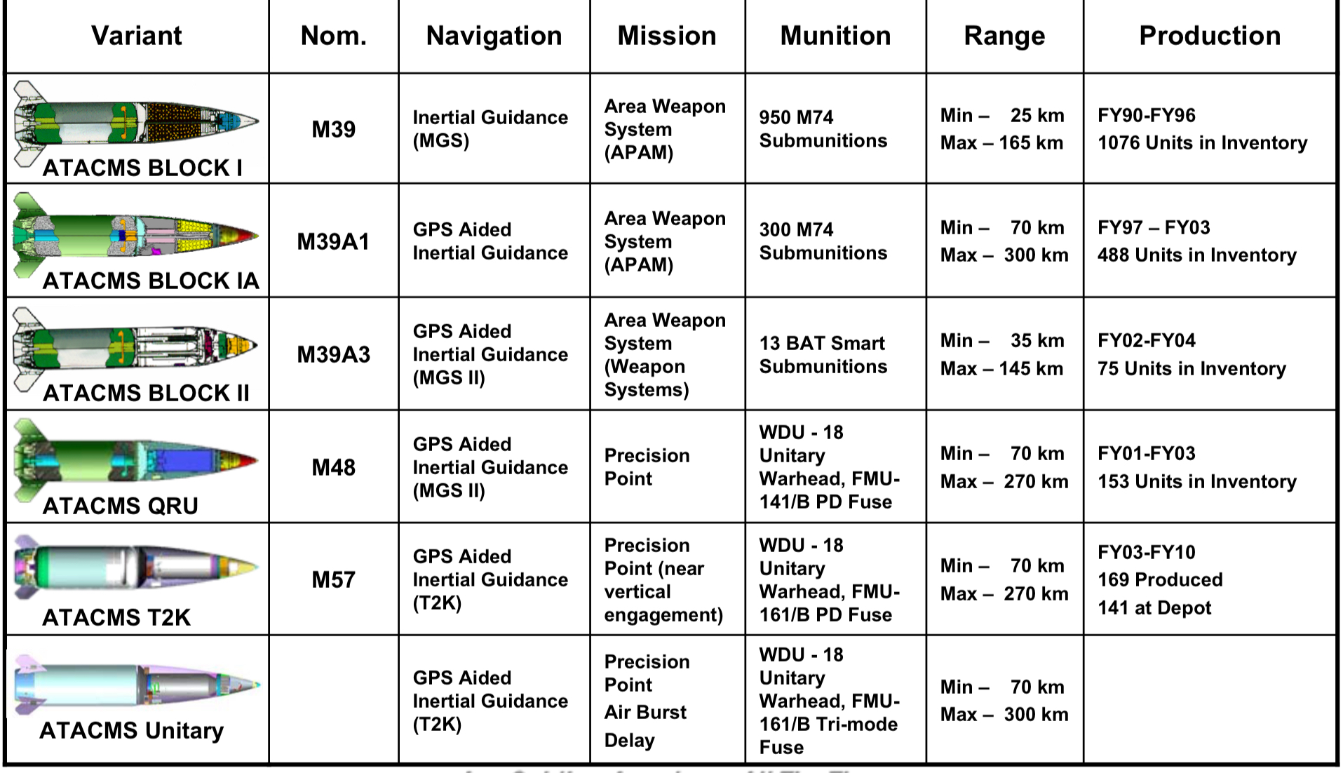 ATACMS osas oletatakse, et saab anda kobarmoonaga varianti.