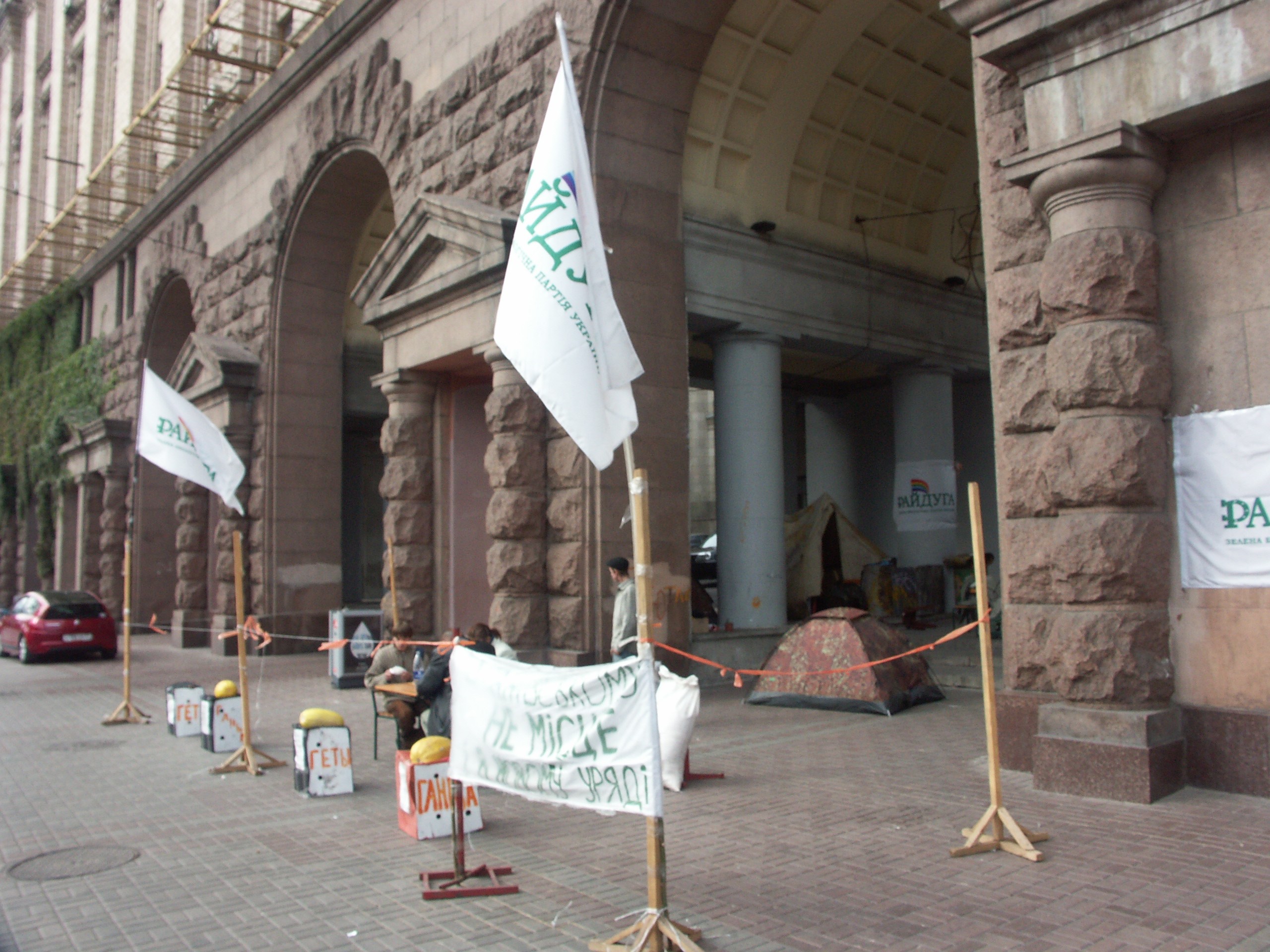 OT, aga Ukrainas ja eriti Kiievis on arvamuse avaldamine ja seejuures telkidega avalikus kohas viibimine olnud küll ammust ajast tavapärane nähtus. Küll protestitakse niimoodi parki kaubanduskeskuse ehitamise, küll kõige muu vastu. Ukrainlased on ses mõttes eestlastest märksa paremad arvamuse avaldajad. Lisan pildid 2005. aastast, kus näiteks üks roheline ökoloogiline partei oma seisukohal on ja teisal nunnad. Muidugi telkides. Ei ole need elukutselised ja pole täheldanud seejuures vägivalda. Ka hiljem on iga masti protestitelkijaid näha olnud. Ses mõttes on usutav see, et need praegused on seal märk suuremast organiseeritusest.