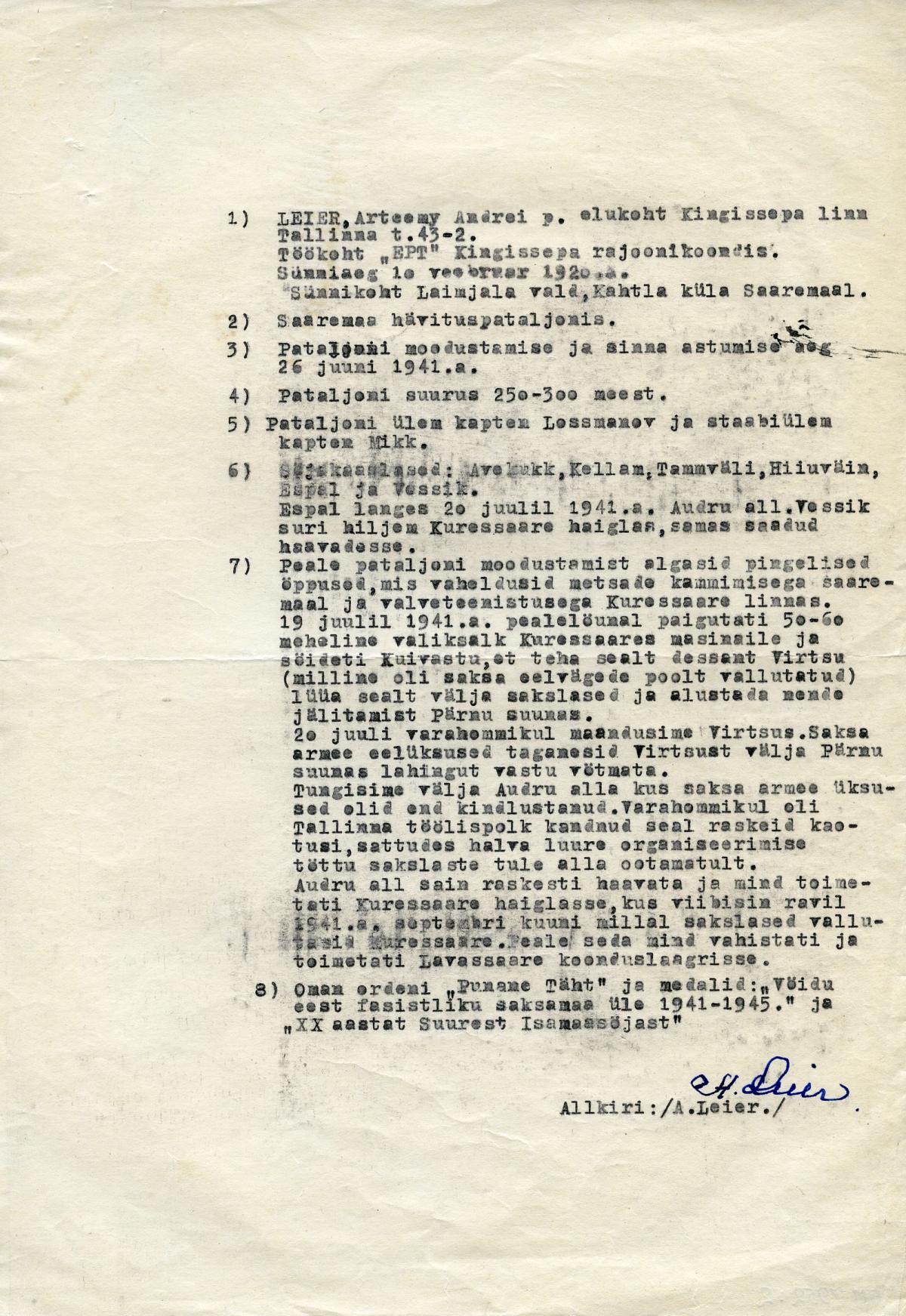 Osavõtmine Saaremaa hävituspataljonist 1941. a., SM _ 7952:2 Ark, Saaremaa Muuseum SA, Re: Lahingud Pärnu kandis