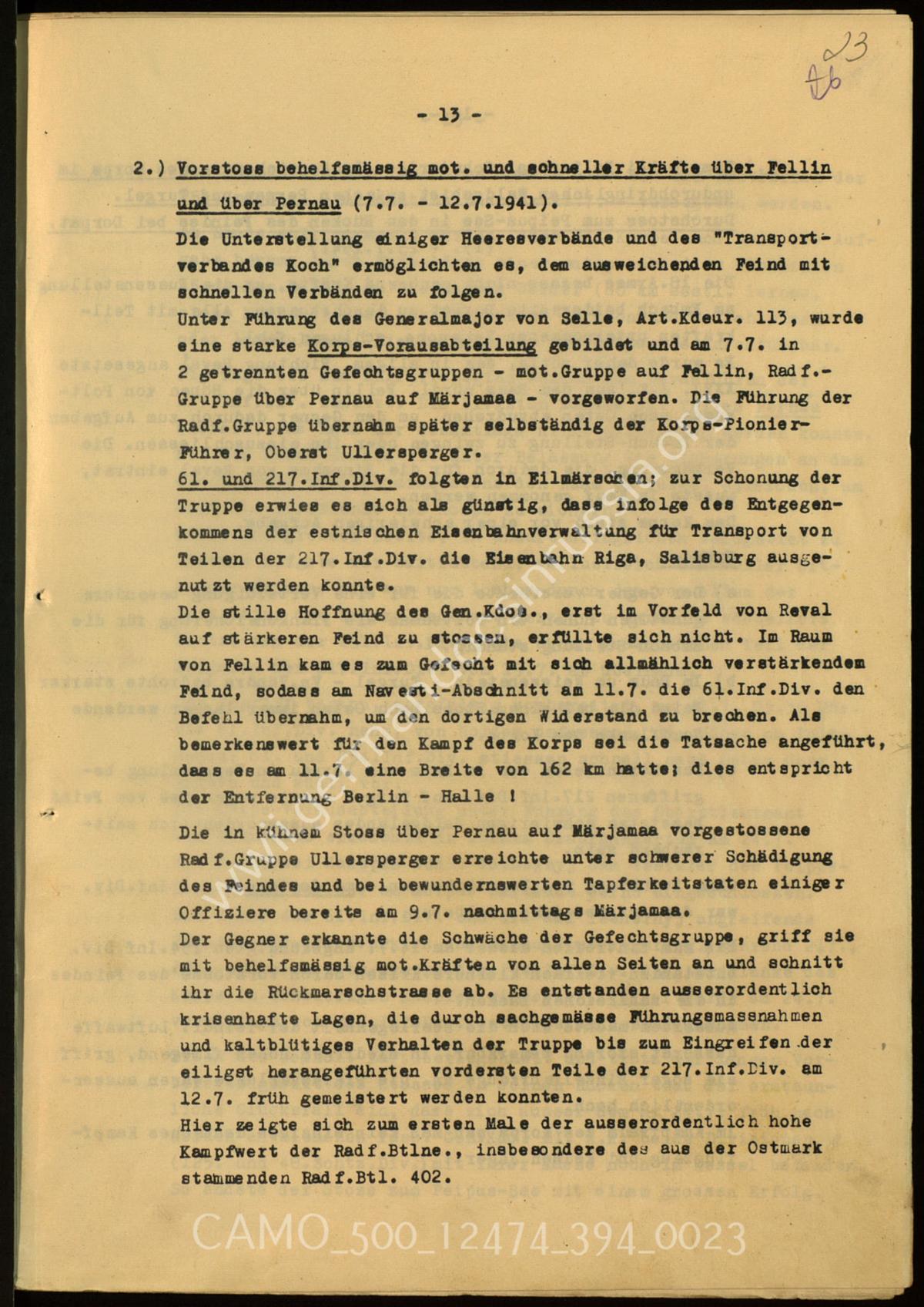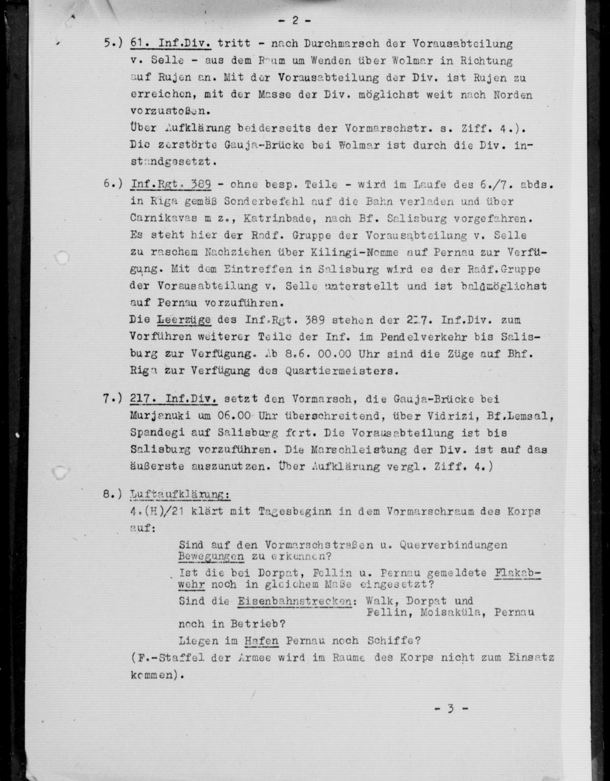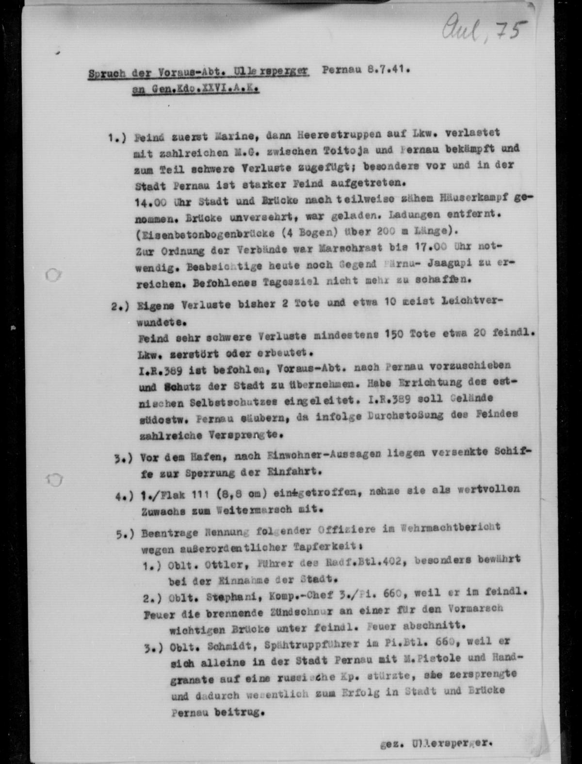 Ich beantrage Nennung folgender Offiziere, die sich bei der heutigen Wegnahme von Pernau besonders auszeichneten, im Wehrmachtsbericht: