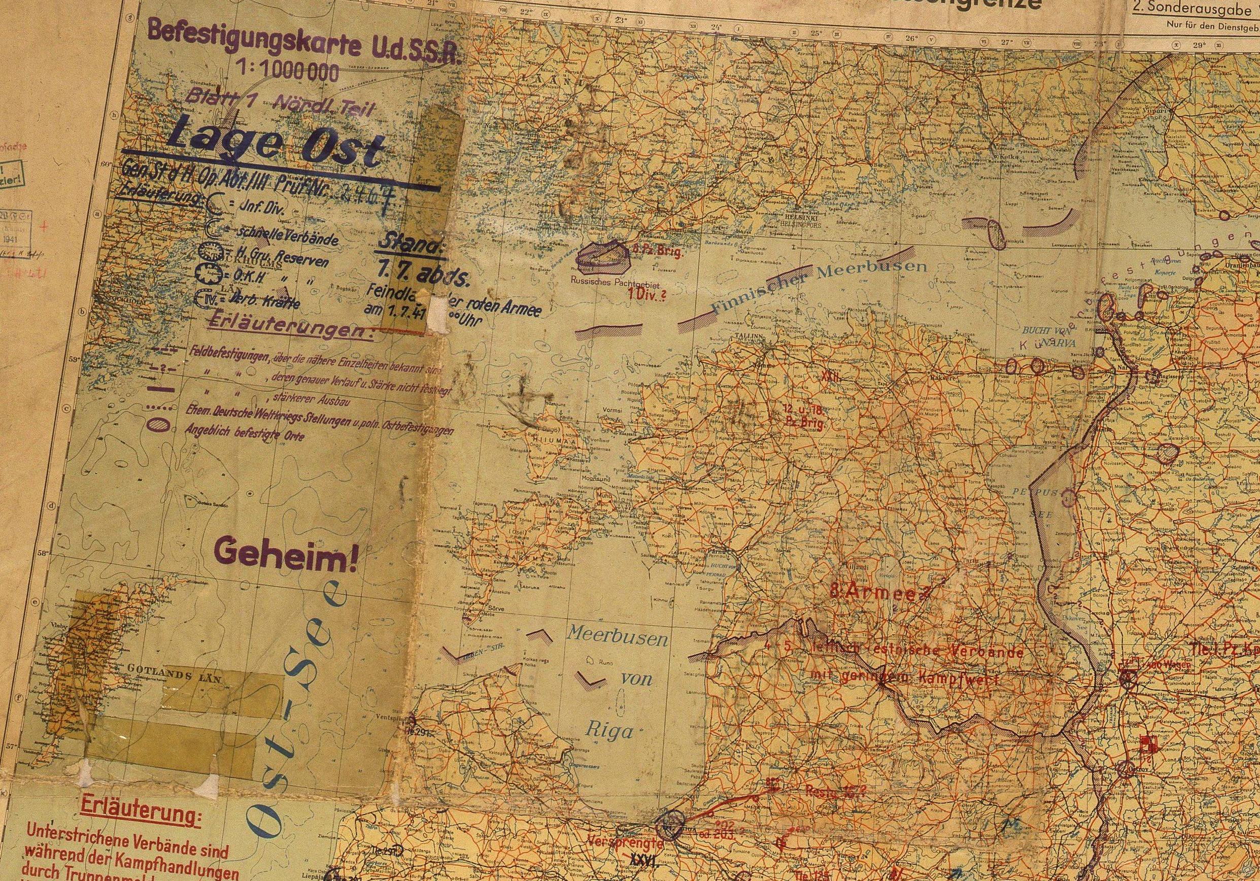 1. juulil nägi seis kaardil välja selline: Viimast korda on "vähese võitlusvõimega läti/eesti üksused" kaardil 3. juuli õhtul. 5. juulil on 181. ja 183. diviis juba Pihkvast lõunas Läti/NSVL piiri taga. 180. ja 182. diviis ilmuvad Porhovi ümbruses kaardile 10. juuli õhtuks. Antud diviiside väljailmumine NSVL-s on ilmselt põhjus, miks 4-5 üksust asukohaga Põhja-Lätis/Lõuna-Eestis kaardilt kaovad.