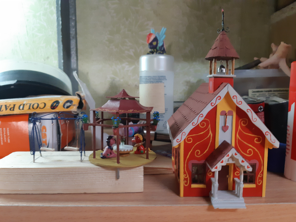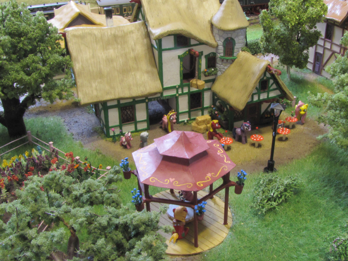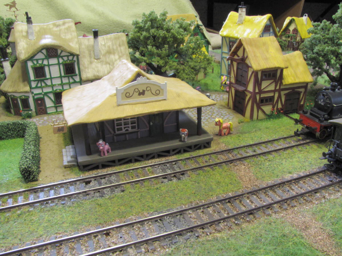 Mul algas küll asi veidi teist pidi, mul oli kindel plaan ehitada Kiltsi jaama makett kahele mudelraudtee moodulile. Ja ei olnud ideed, mida teha teisele kahele moodulile, mis käisid Kiltsi jaama vastaspoolele, et raudtee ovaali otsad kokku saaks. Ponyville oli uitmõte, ma ei uskunud, et ma seda tegema hakkan. Lähteülesandeks oli 17mm kõrge poni ja katse, kas on võimalik sellist ise teha ja kui keeruline see on. Osutus üsna lihtsaks. Ja need majad osutusid oluliselt ilusamateks ja omapärasemateks kui oodata oskasin. Ja nii ta läks.