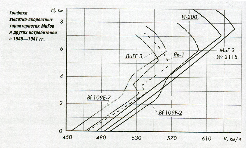 490 km/h, Me-109 F - 515 km/h) Samal ajal juba 4–5 kilomeetri kõrgusel jäi MiG-3 mootoriga AM-38