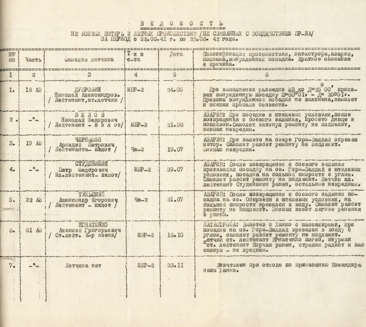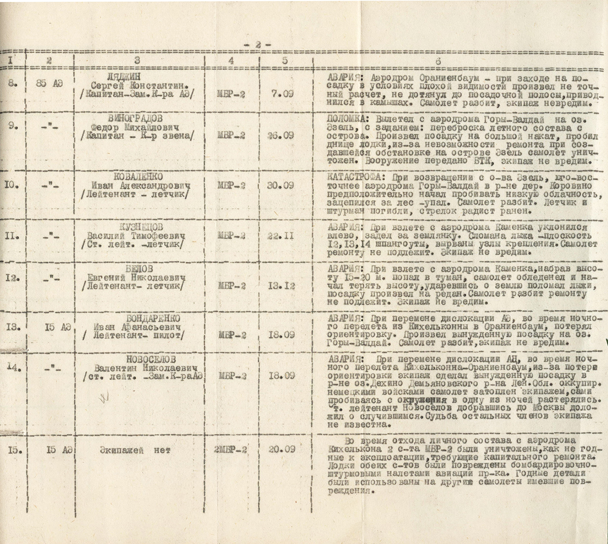 4.03.1940 tuli alla üks mereväe DB-3 10.lennubrigaadist, kuhu nsvl-i lennuks oli sisse pugenud ka muid mehi peale ettenähtud meeskonna (kokku 6), kes kõik surma said.