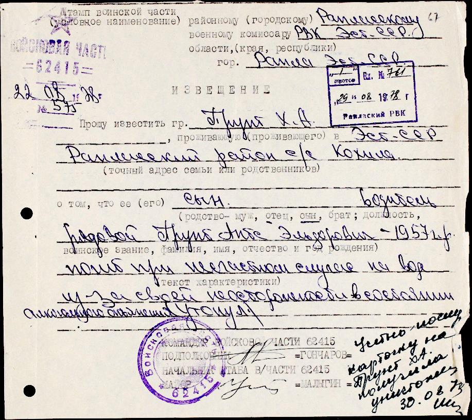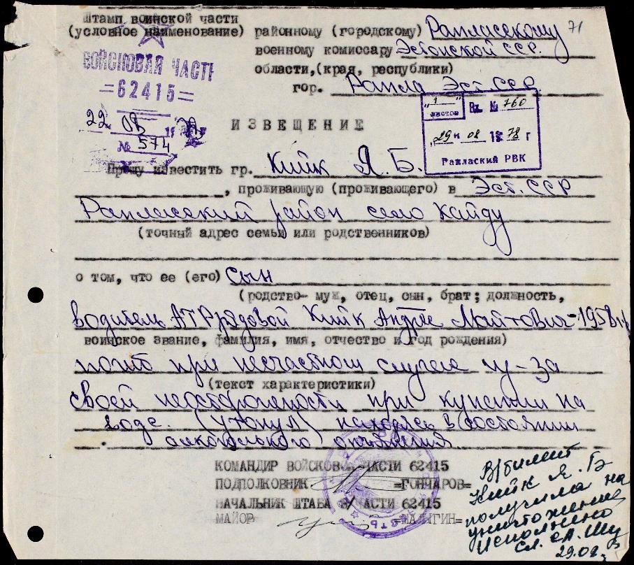 Fucs kirjutas: Kiira Kahn: [i]-Ma pöördusin polkovnik Federko poole ja ta oli nii lah-ke minu vastu nagu ta oli alati olnud. Ja ma palusin, et annaks mulle noormeeste nimed, kes on Nõukogude armees teenimise perioodil hukkunud ja ta oli väga valmis seda tegema. Ja siis kui ma kolme päeva pärast talle helistasin ta oli niivõrd kohkunud häälega ja ütles mulle nii, et mul on väga kahju, aga need dokumendid on hävitatud.