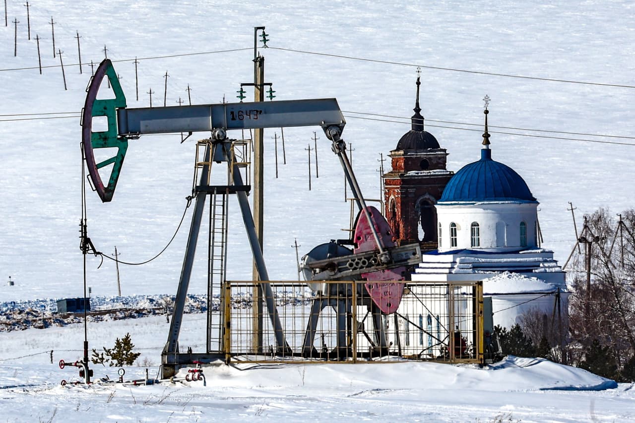 Pumpjacks ammutavad naftat Venemaal Tatarstanis asuvast puurkaevust.jpg