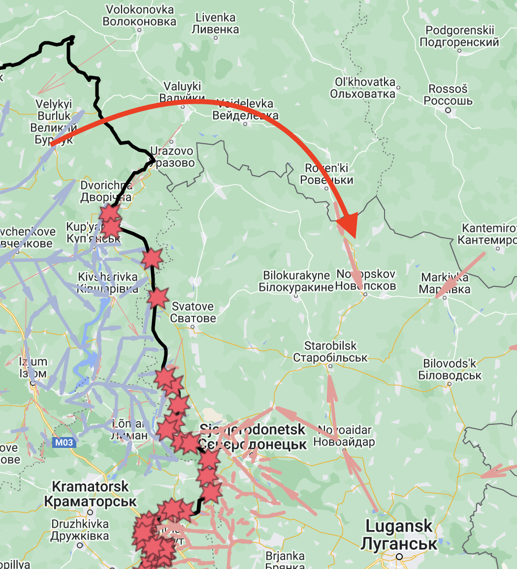 Eks ukraina kindralstaap peab karukese kõhu alt leidma kõige valusama koha kui tahab edukat rünnakut. Tehniliselt sobib iga koht Krimmist Svatoveni aga praktikas kukub Krimm kun Zaporisjeni kohe ära oma veetee tõttu. Dessandi võid edukalt teha aga selle varustamine? See suund on teisesena hea kui juba ollakse sillapea kuskil loodud ja orkidel on väed paisatud sinna ning siis kena noahoop selga...