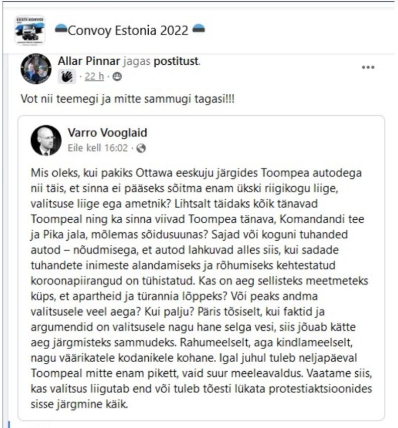Ja Vooglaid ise sealjuures rõhutas, et tema pole selle konvoipull korraldaja, temals lihtsalt seal