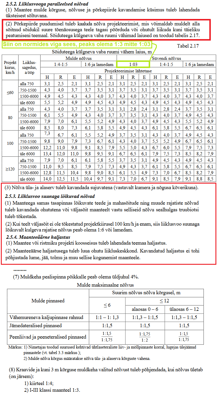 Paar postitust kõrgemal on seal juttu veel ka riigimaantee laiusest ühes konkreetses lõigus, aga kuna see jama nüüd seal ära likvideeritakse, siis ei ole see enam aktuaalne... samas näitab see näide seal, et igasugustele normidele vaatamata tehakse vahel asju nii nagu jumal juhatab....