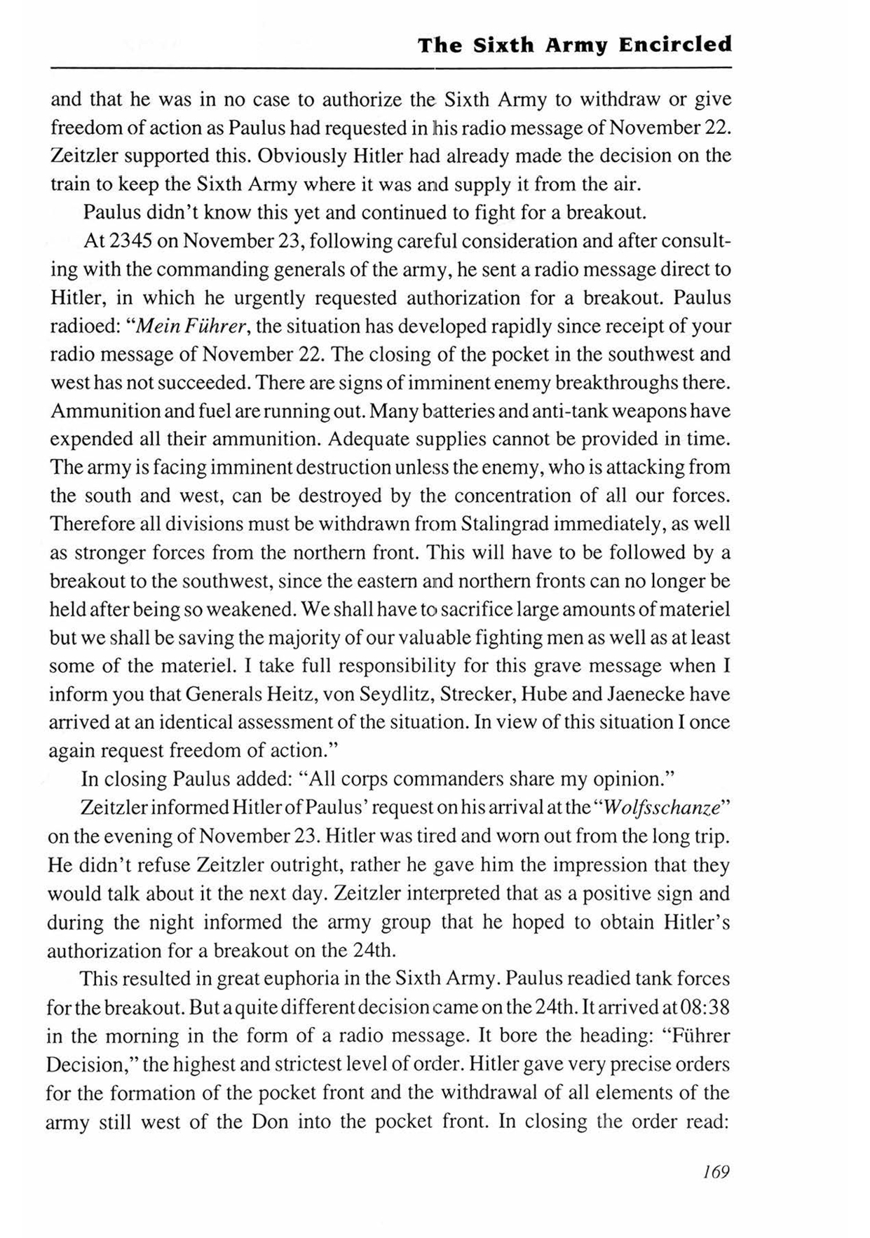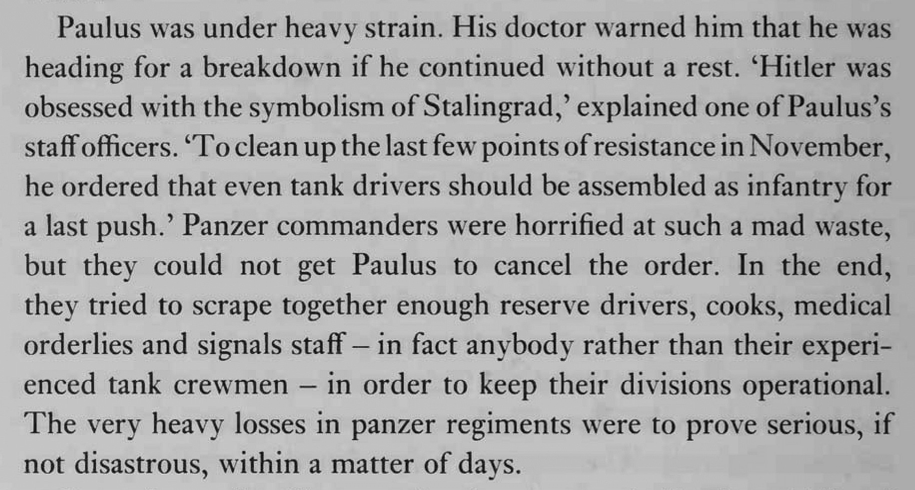 Küsimus ongi selles, kas Stalingradi kott oli Hitleri poliitiline otsus (Mansteini väide), Punaarmee pealesunnitud olukord (TIK väide) või minu meelest nende kahe kombinatsioon, kaldu rohkem TIKi väite poole (Stalingradi väed jäeti kotti, sest vastasel juhul oleks terve lõunarinne kokkukukkunud).